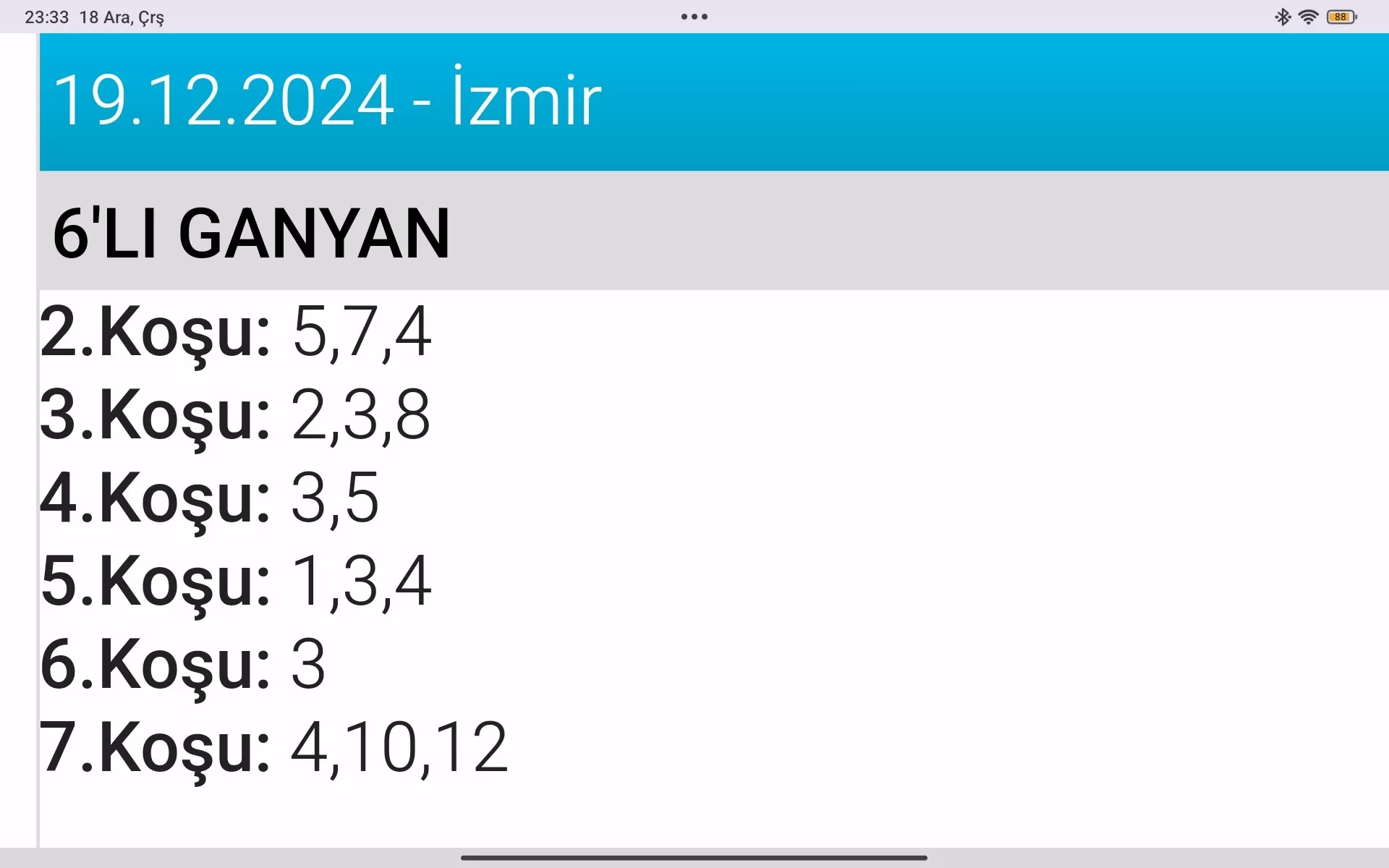 Düşüncelerimiz genel olarak aynı sayılır. Feyzullaha iyi taylar vermişler bugün. Son ayakta 12den sonra tuttuğum isim feyzullahın bindiği tay