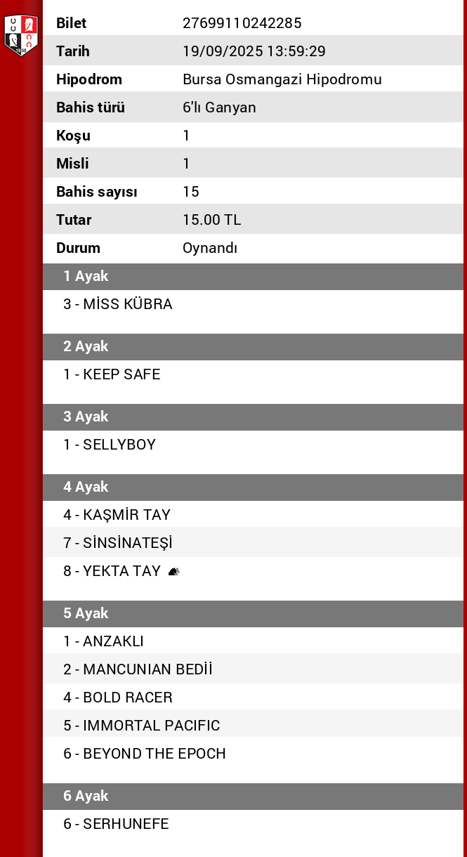 5.KOŞU : 5 IMMORTAL PASIFIC kaçabilir 4 BOLD RACER dan ters koşu bekliyorum geniş kuponlar kapatsın