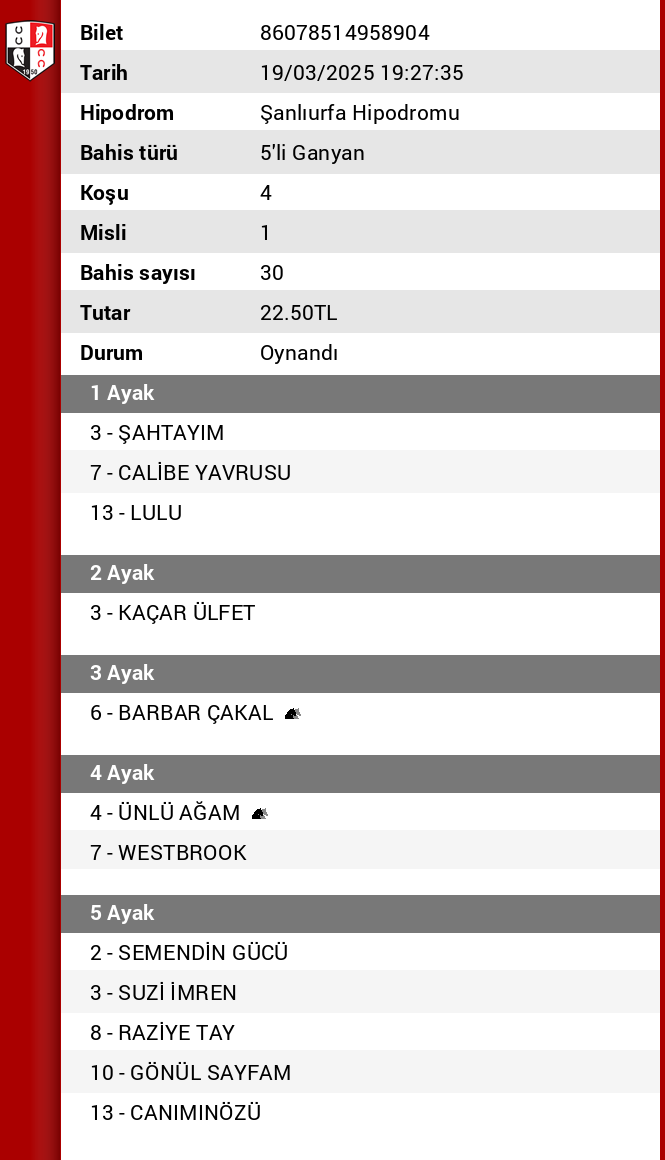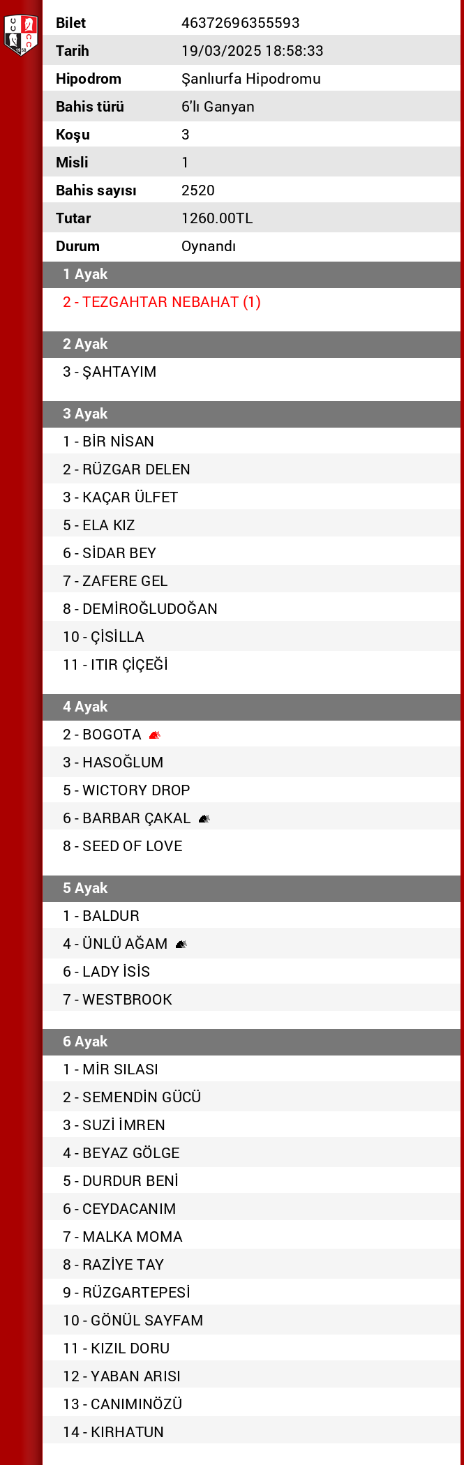 4. Koşu : Uygun rakipleri yanında koşacak olan 3-ŞAHTAYIM formda binicisi ile kazanmasını beklediğim isimdir.