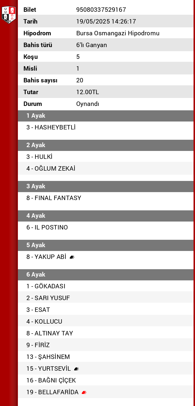 5.AYAK: 8 YAKUP ABİ’nin ilk koşu performansı gayet güzeldi. Maiden dan çıkmasını bekliyorum.