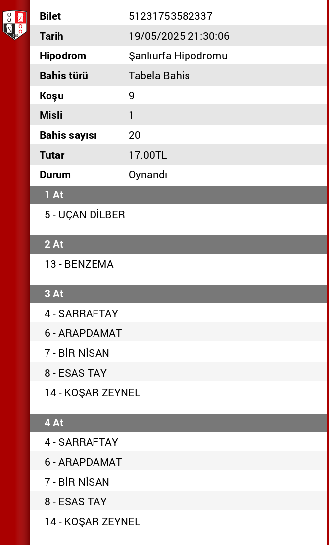 Tarih 19-05-2025 21:25:01 Hipodrom Şanlıurfa Hipodromu