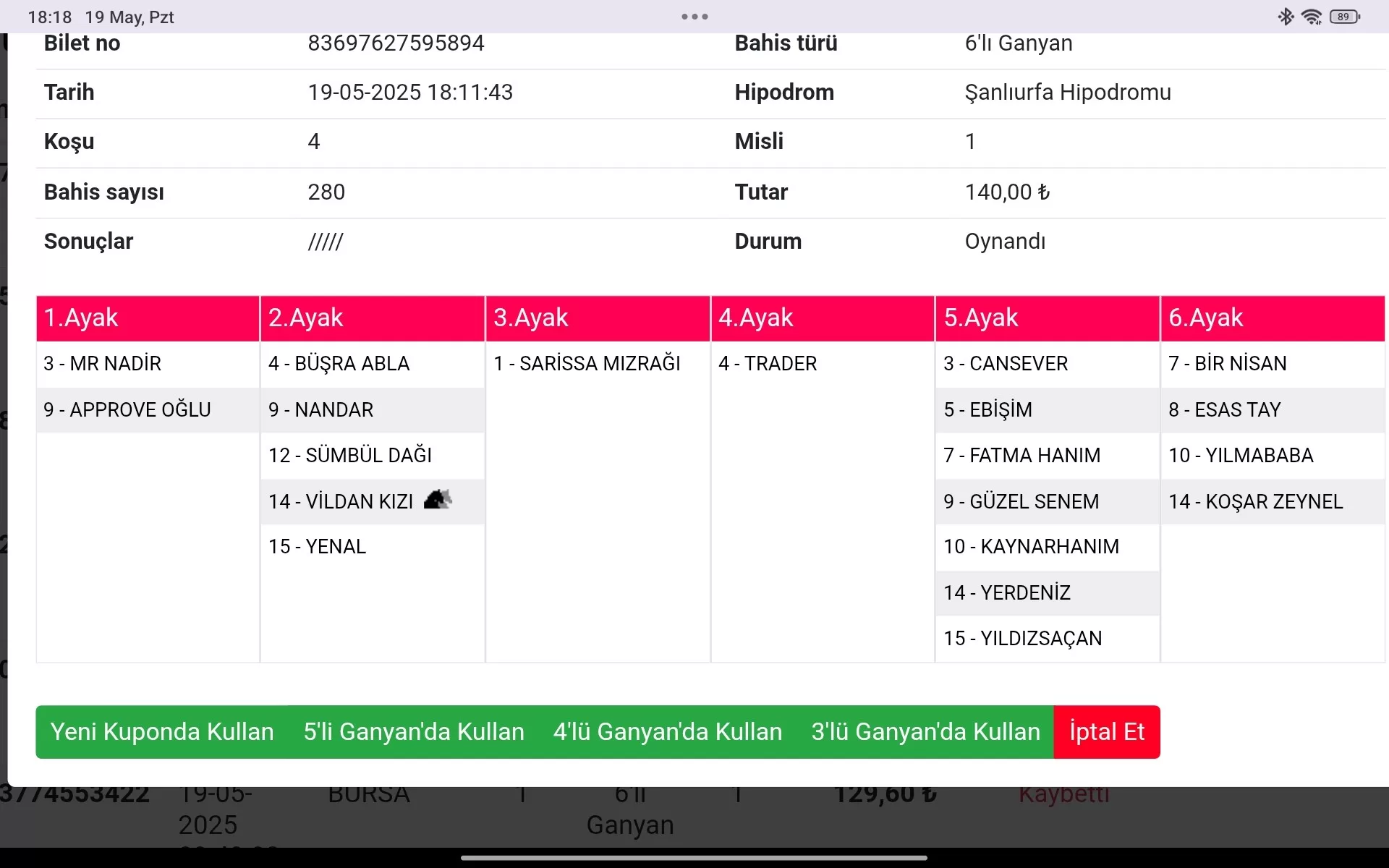 6.AYAK: 4 yaşındaki maidenların koşusunda 20 at katılıyor. İlk ayaktan risk alıp burayı da kapatıyorum.