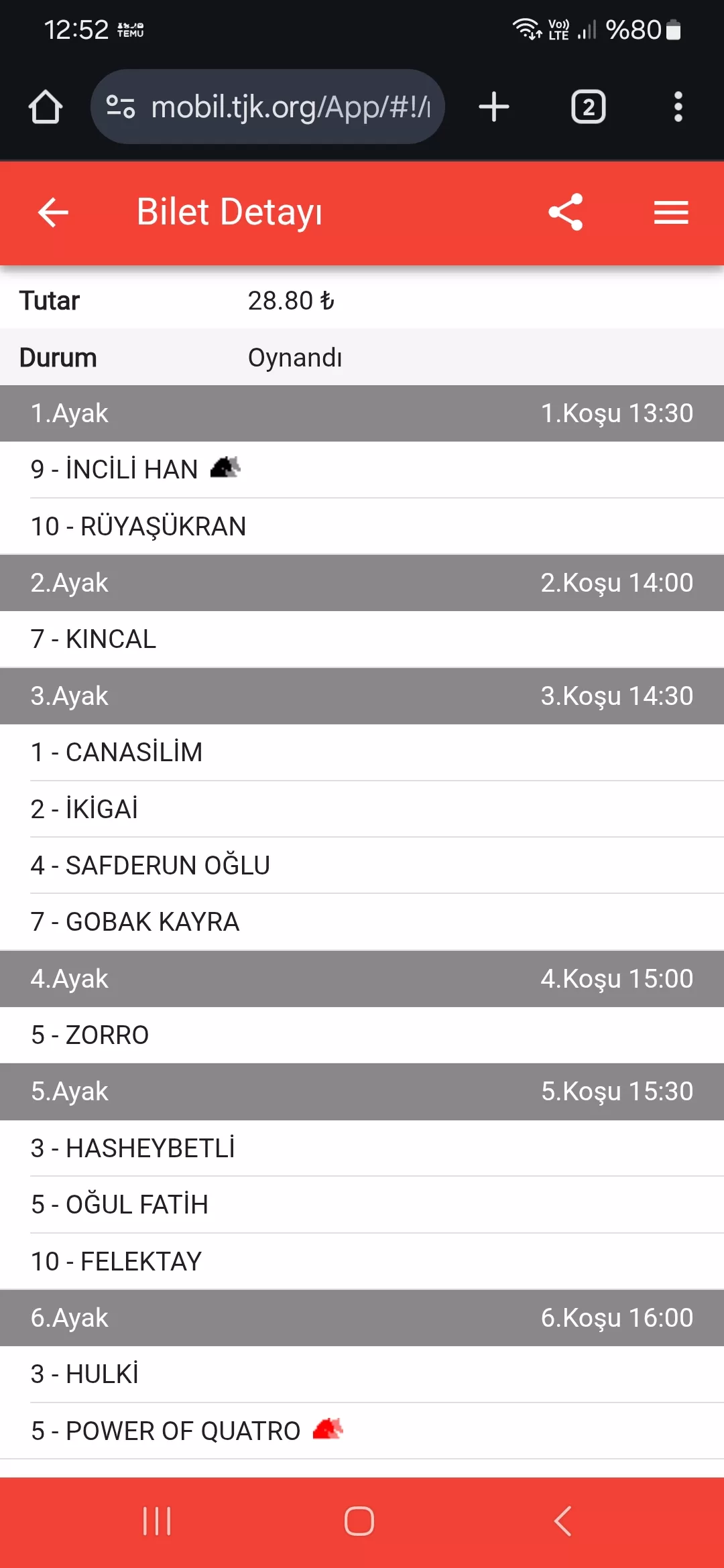 Bilet no 92425278330646 Bahis türü Sıralı İkili Bahis