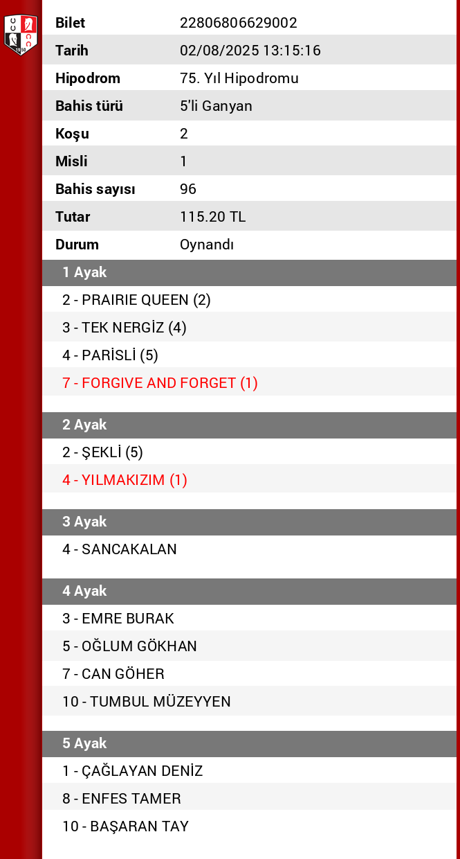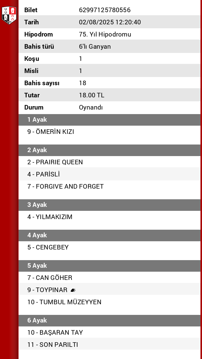 Bahis sayısı 251.99999999999997 Tutar 302,40 ₺