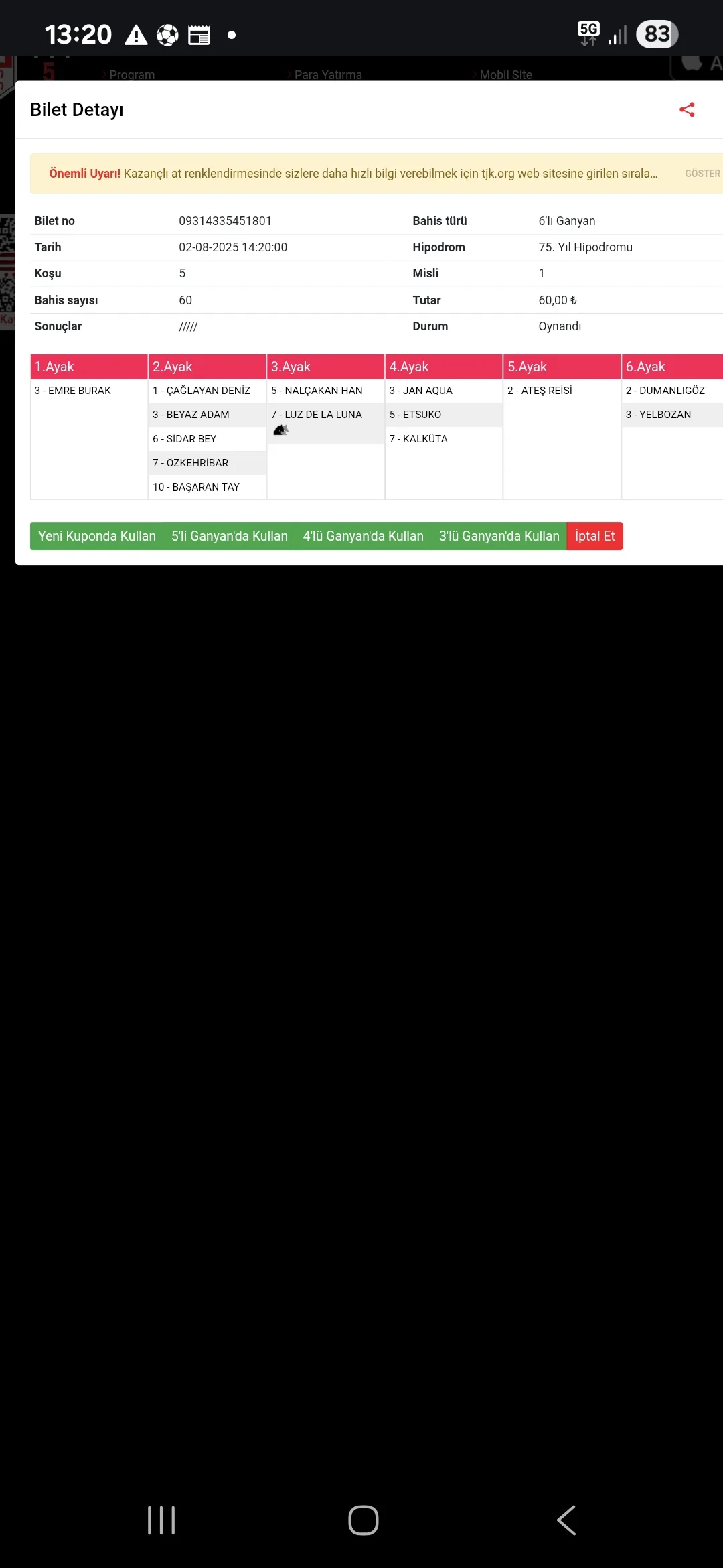 Kalemini kırdığım at geldi orada da iyi başlamadım maalesef :( 2. altılıya diyelim.