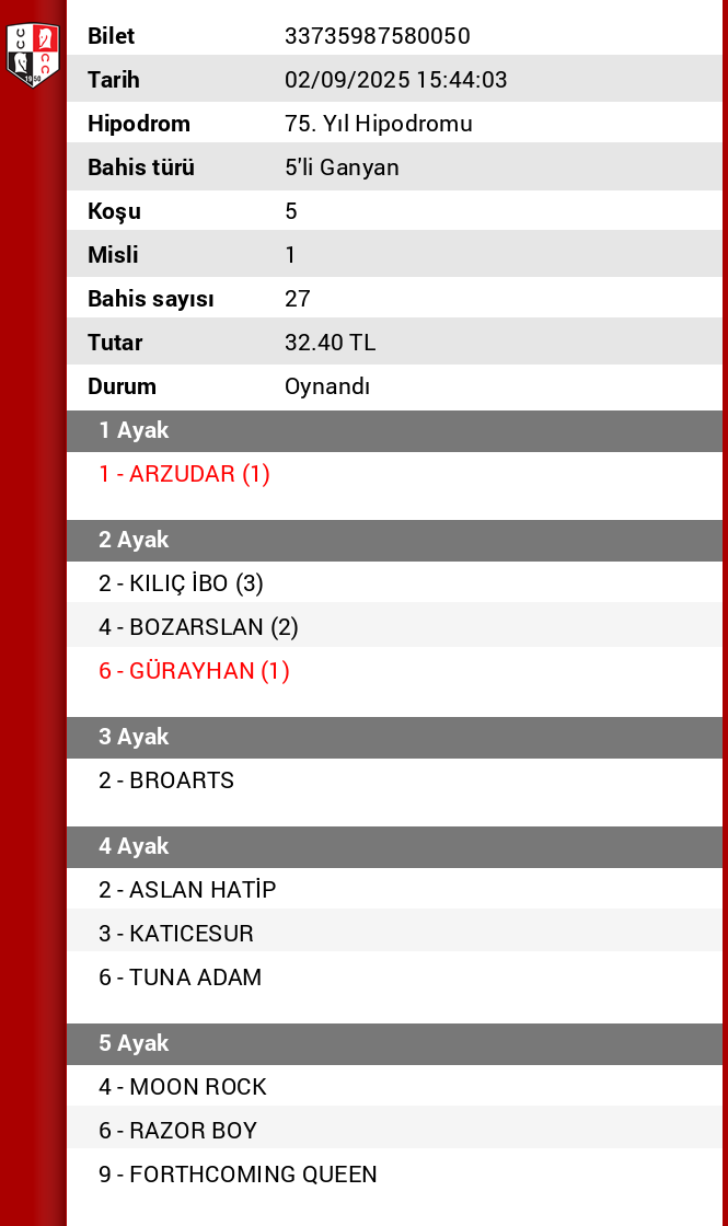 5.KOŞU : 1 ARZUDAR ilk yarışı muazzamdı 18 boy . Tay ilk yarışlarından sonra nasıl böyle koştu dediğimiz yarışlar oldu ama atın idmanı da çok iyi formunu devam ettiriyor gibi ikinci yarışını da kazanır gibi BANKO