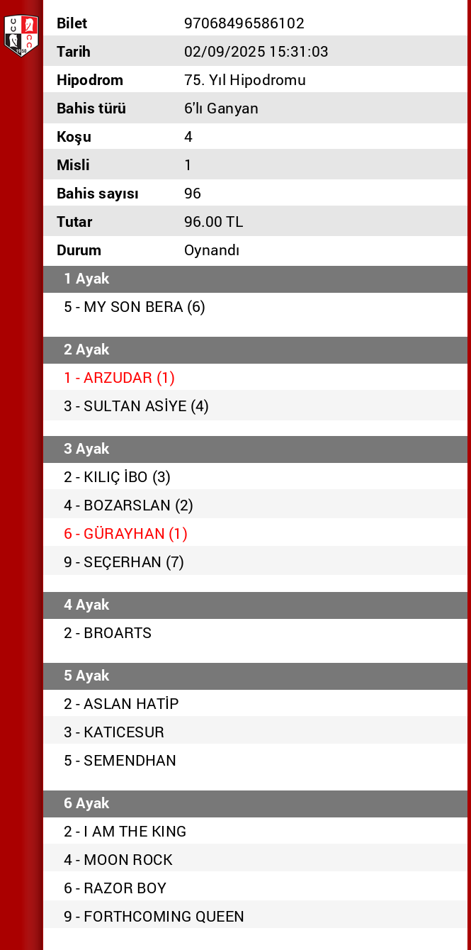 6.KOŞU : 4 BOZARSLAN bu grupta kazanırım derse kazanır küçük kuponlara üç isim daha söyleyeyim araya rağmen 5 ENDGAME 6 GÜRAYHAN 1 CİHANA BEDEL yazılabilir aksi HEPSİ