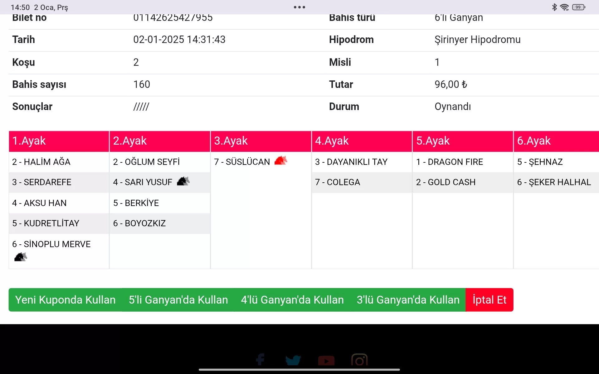 4.AYAK : 3 DAYANIKLI TAY 6 gün önce koştu aksi durumda 4.2.6.7 bulunsun derim