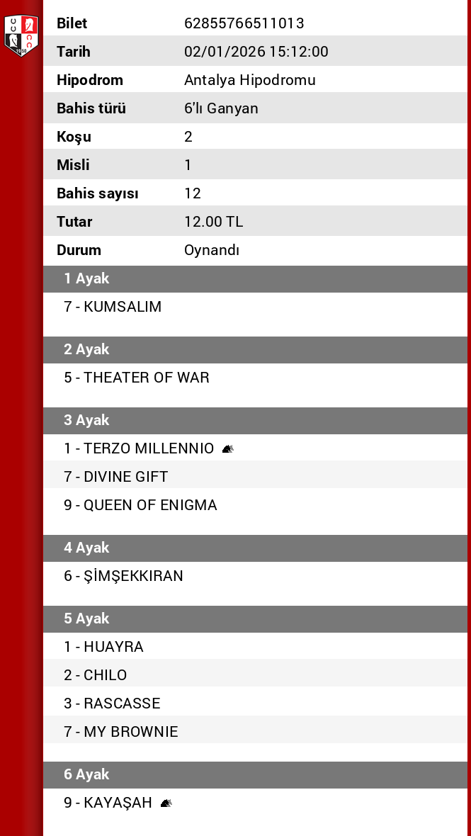 2.AYAK : 3 GRAY DREAM ve 5 THEATER OF WAR arasında ama sürprizde 10 STEEL PRINCESS bulunsun derim