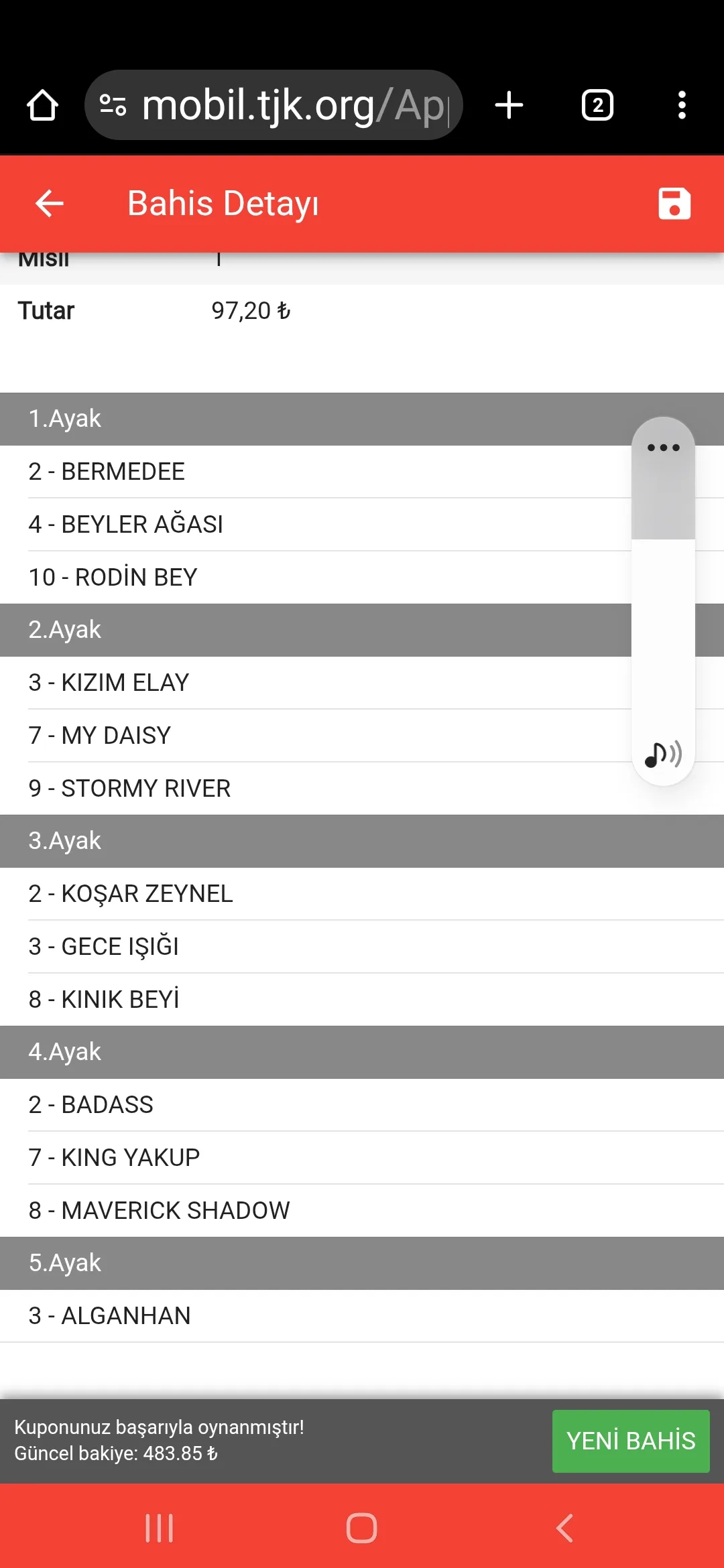 4.koşu : 2 BERMEDEE bu safkan iki yarıştır idmanı iyiydi yine iyi son yarış güzel koştu bu defa çok şanslı tek rakibi bence 8 KING ANCESTOR olur geniş kuponlar 1 6 12 yazabilir
