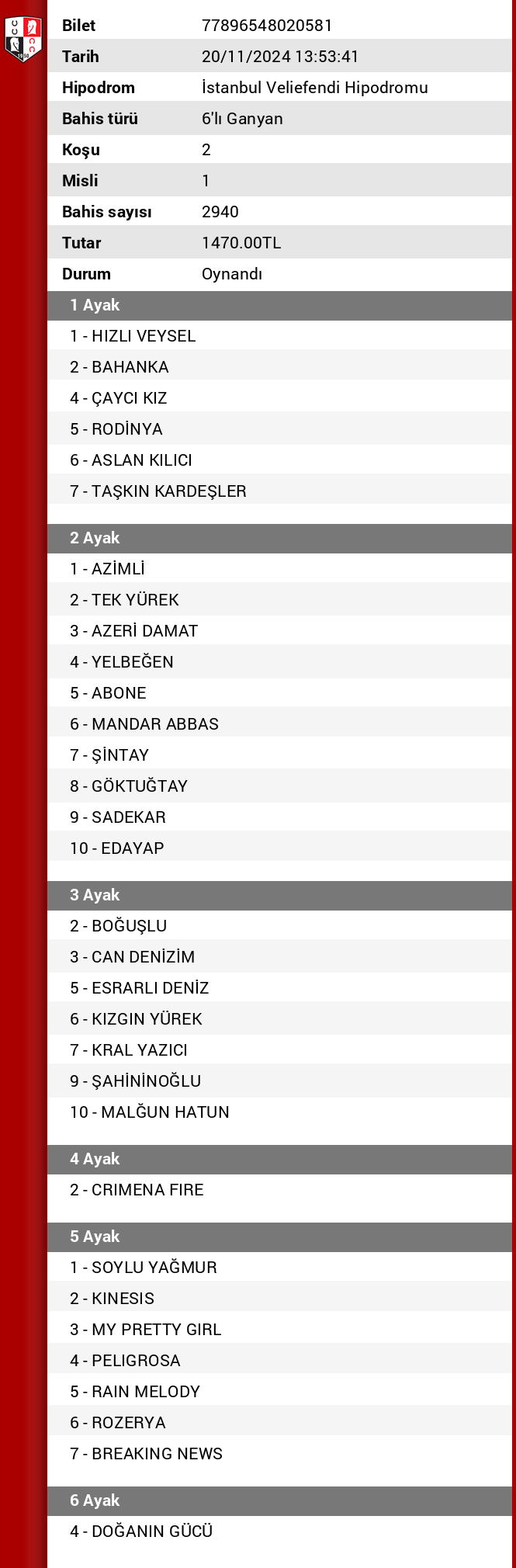 20 KASIM 2024 ÇARŞAMBA İSTANBUL ALTILI TAHMİNLERİ (RISING)
