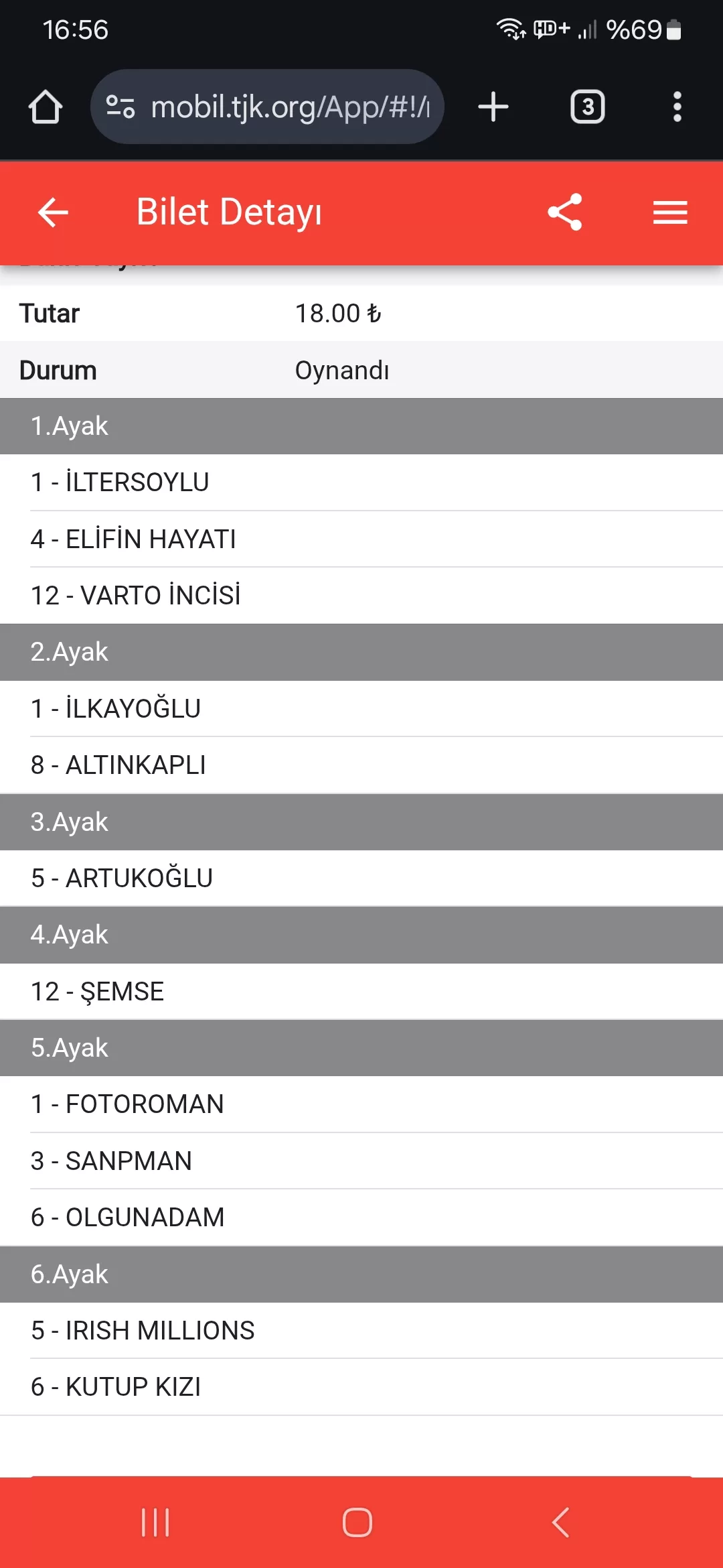 Bahis sayısı 156 Tutar 117,00 ₺