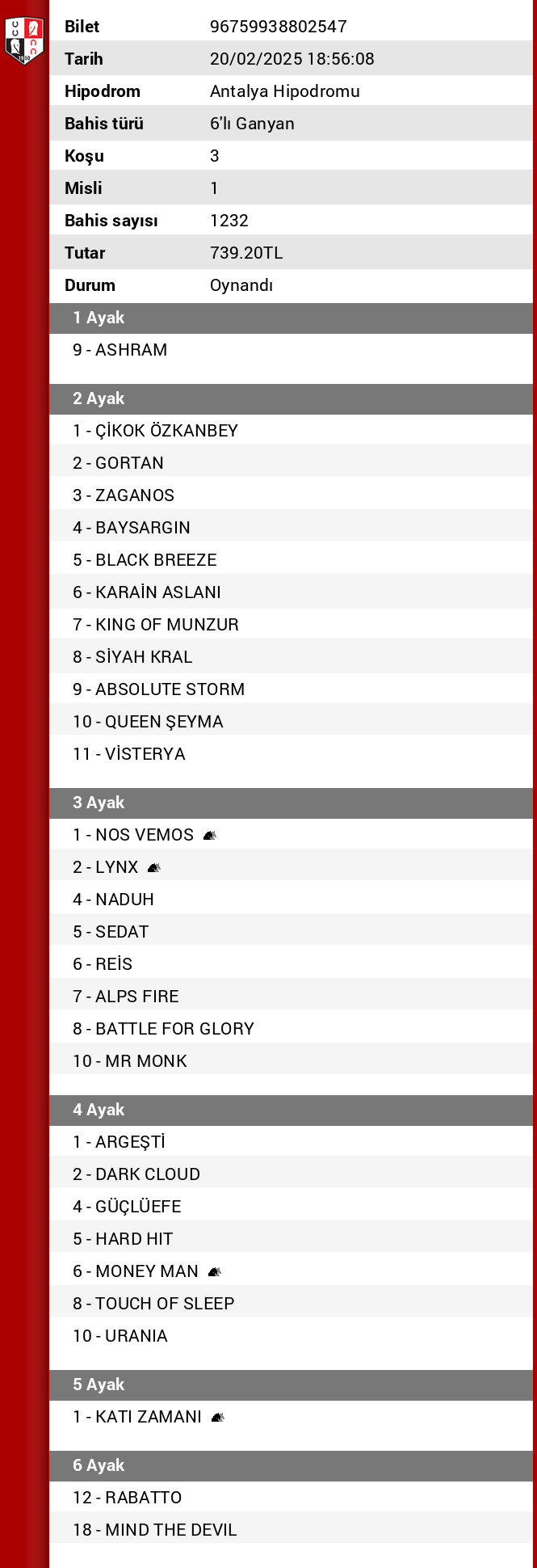 6. Koşu : Bu sefer A.Kurşun ile yarışacak olan (6/9)-MONEY MAN pistteki durumunu yansıtırsa kazanırda duruyor. 10-URANIA, 4-GÜÇLÜEFE ve 1-ARGEŞTİ rakipler.