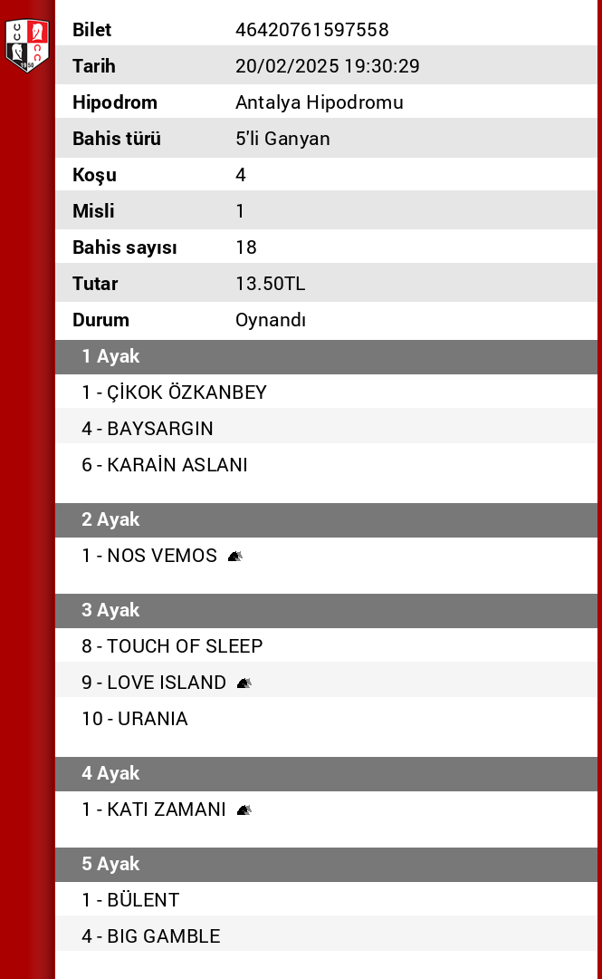 4. Koşu : Antalya’daki ilk yarışında 2. olan bugün biraz daha uzayan mesafede koşacak olan 7-KING OF MUNZUR favorim. Rakipleri şablonumdaki gibidir. İstediğiniz gibi küçültün.