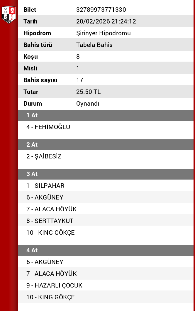 Nevzat’i da birileri kizdirmis herhal, son 4 yarisi aldi, 1 numara SILPAHAR ile 5. yi de almaz umarim. Handikap15 de kosu 🙏