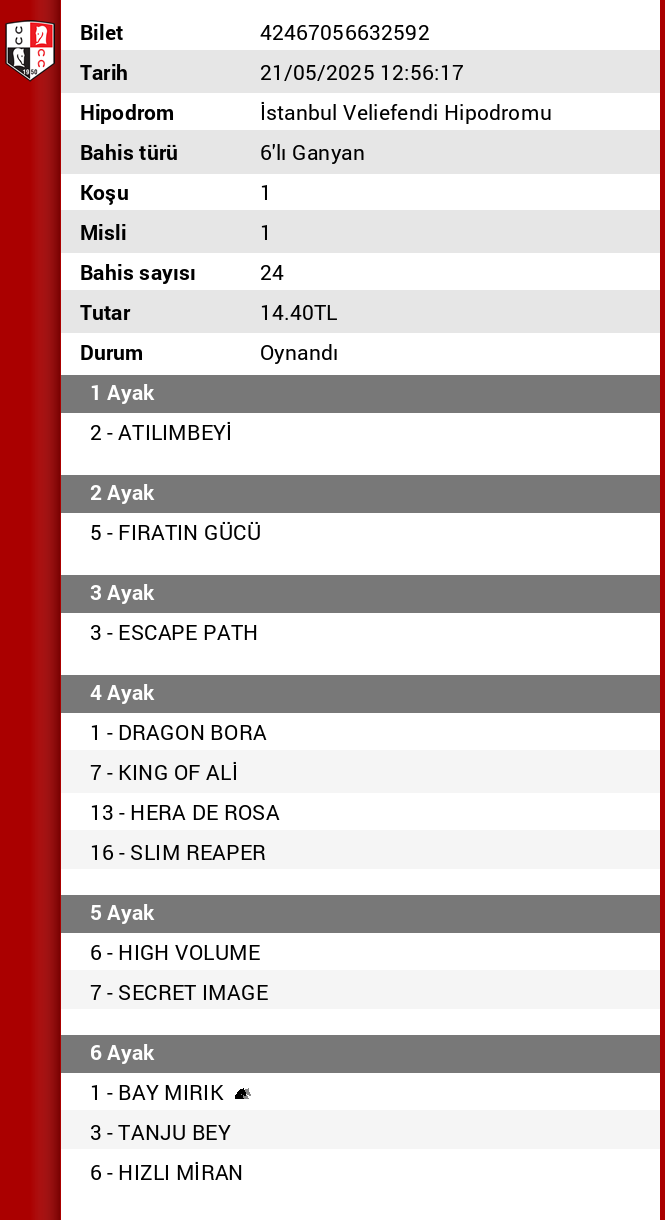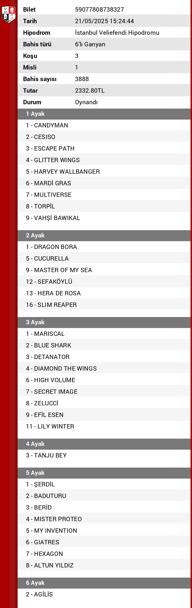Tarih 21-05-2025 17:27:28 Hipodrom İstanbul Veliefendi Hipodromu