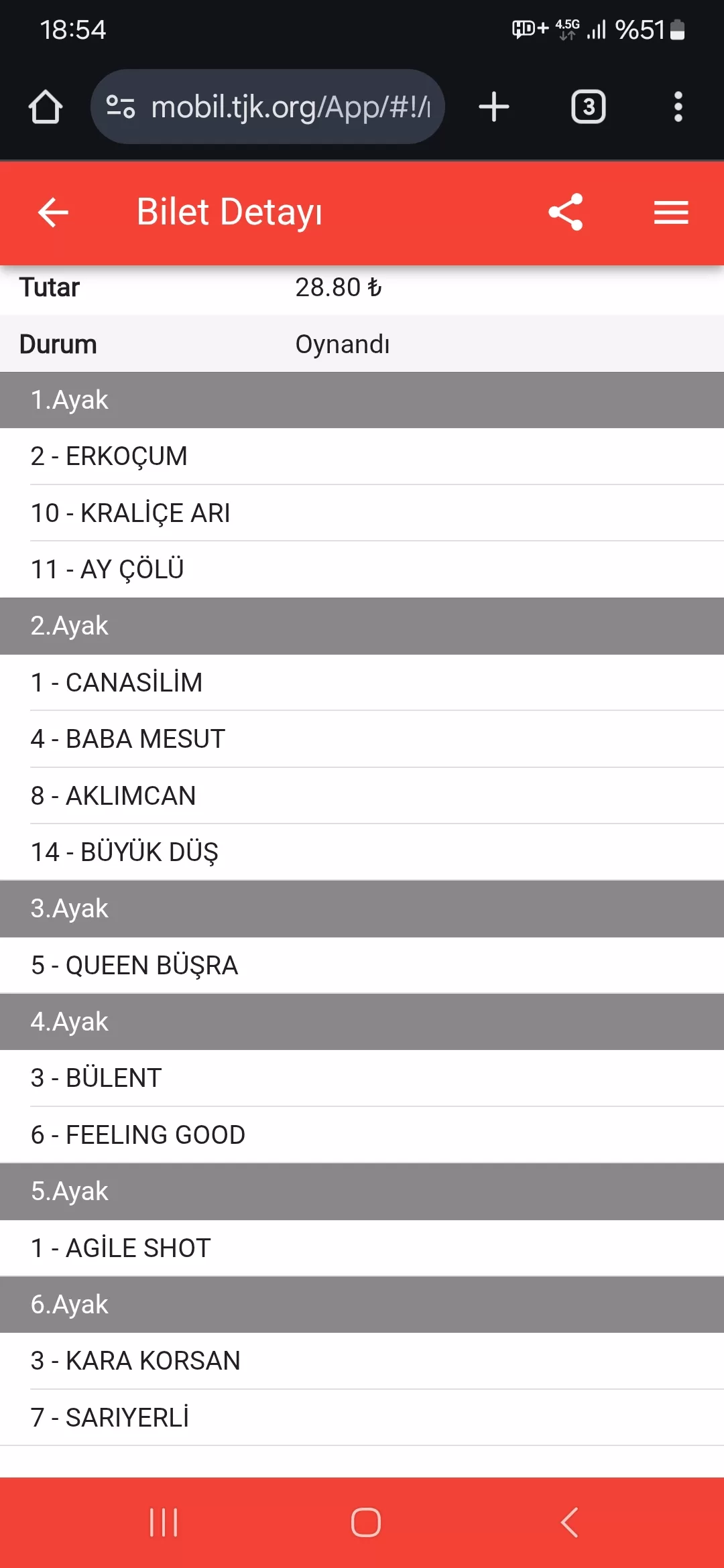 3. Koşu : Zor yarış. Bu sefer Akının bineceği 4-YILDIZ TOZU favorim olsa da burayı kapattım.
