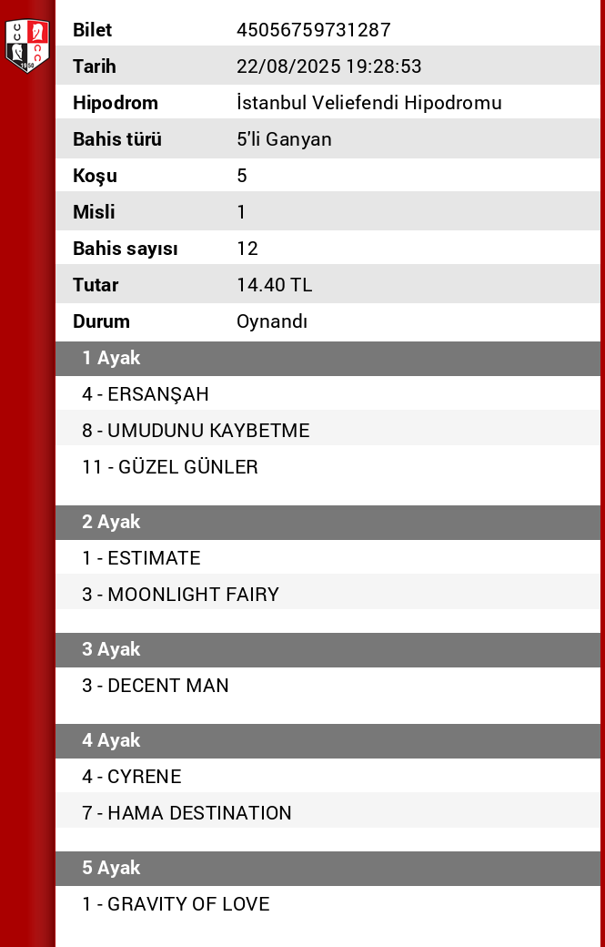 5. ayak) Burada büyük bir risk alacağız ve idman görüntüsünün bizi yanıltmamasını umacağız… Ayağına çok seri bir tay izlenimi veren 7 HAMA DESTINATION risk alarak ikinci bankomdur…