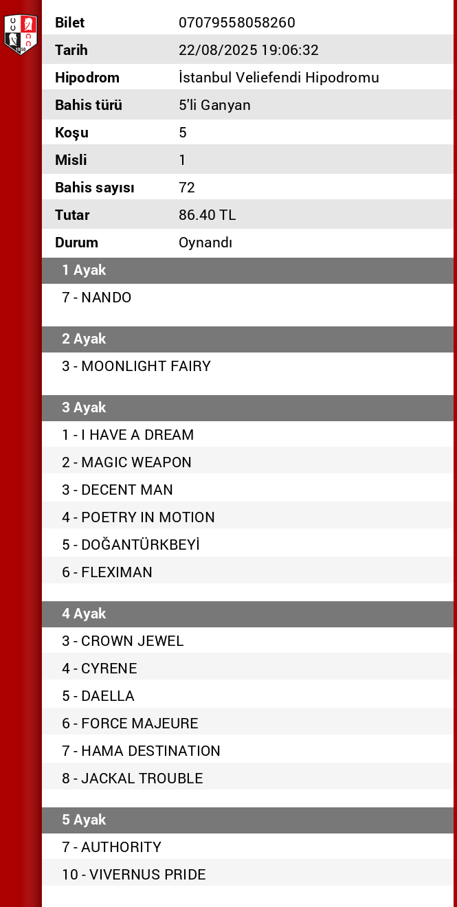 97.15 ganyani varmis 8 numaranin. Tam sizlikmis :) 2.244,28TL vermis sirali 3’lu bahis. Cok yazik olmus :(