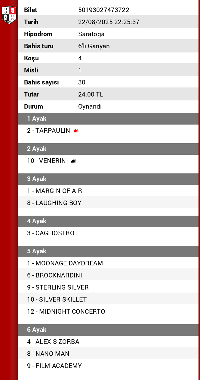 4.AYAK :  4 POETRY  IN MOTION anafartalarda çok eksik koştu bu defa kazanabilir alternatif banko 3 DECENT MAN son yarış yıktı geçti 12 günlük ara o performansa yeterli olur mu bilemem rakibidir