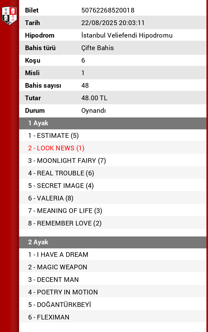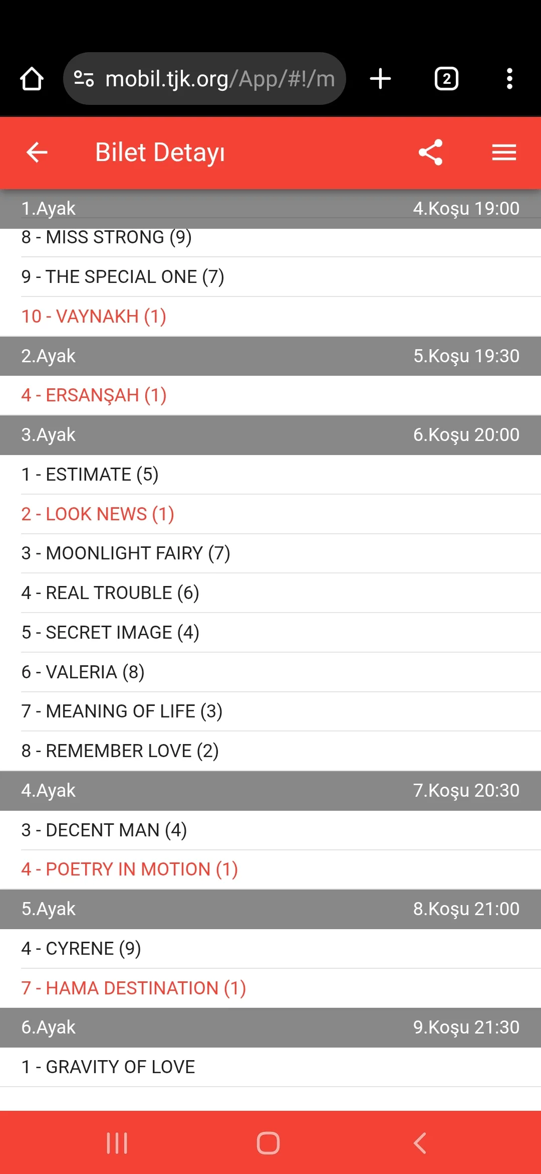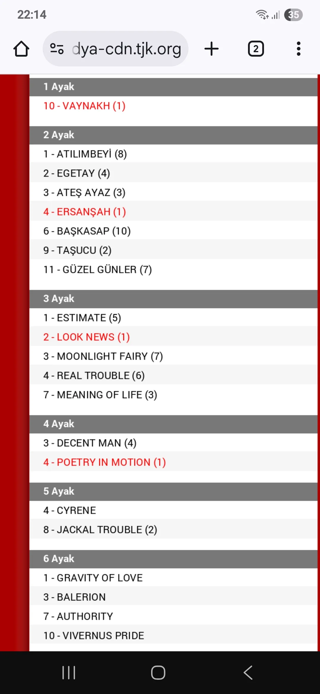 3.AYAK :  1 ESTIMATE kazanması lazım ama kilo falan bir de karataş bu aralar formsuz  7 MEANING OF LIFE 2 LOOK NEWS 4 REAL TROUBLE  rakip olurlar