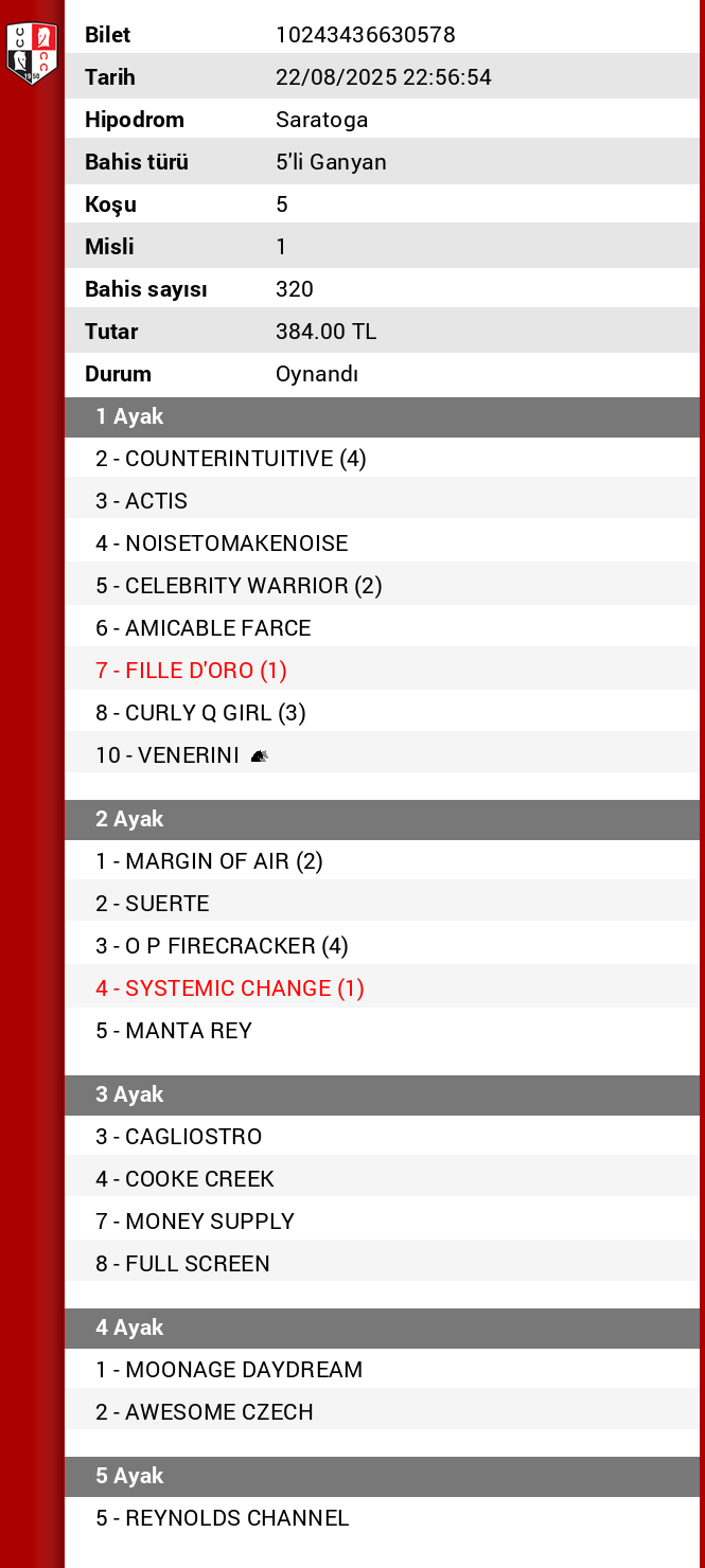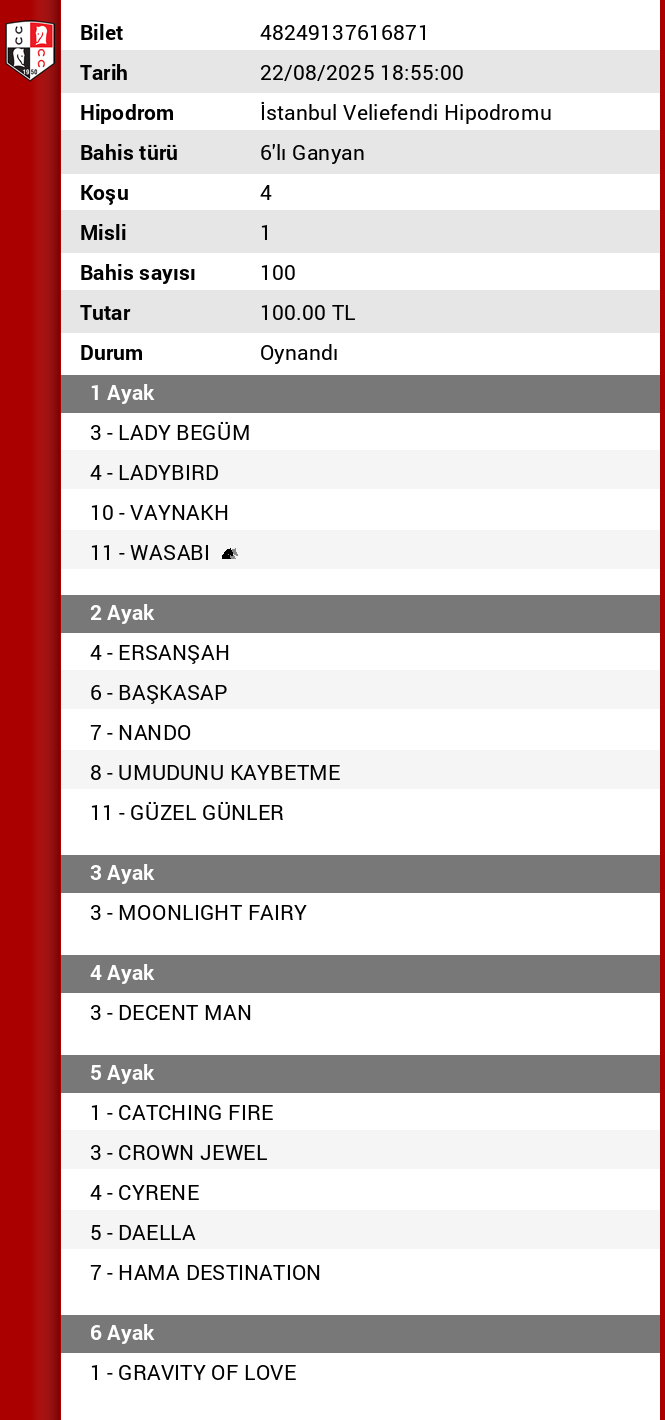 1.AYAK : 10 VAYNAKH bu safkanın idmanı iyi gayette diri alternatif risk alınabilir. 3 LADY BEGÜM 1 EMLAKÇI KIZ 11 WASABİ dikkat