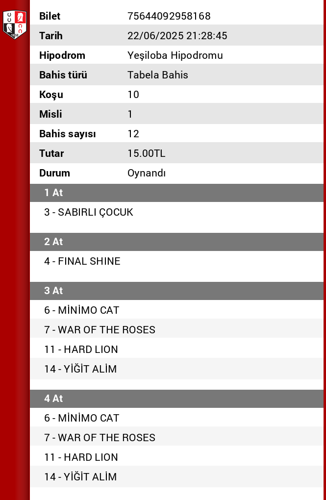 Ancak son ayağa vereceğim atlarla sizlerinde katkısı ile tabela ve Beşli kovalayin Derim.aksam vurgun yapicaz …