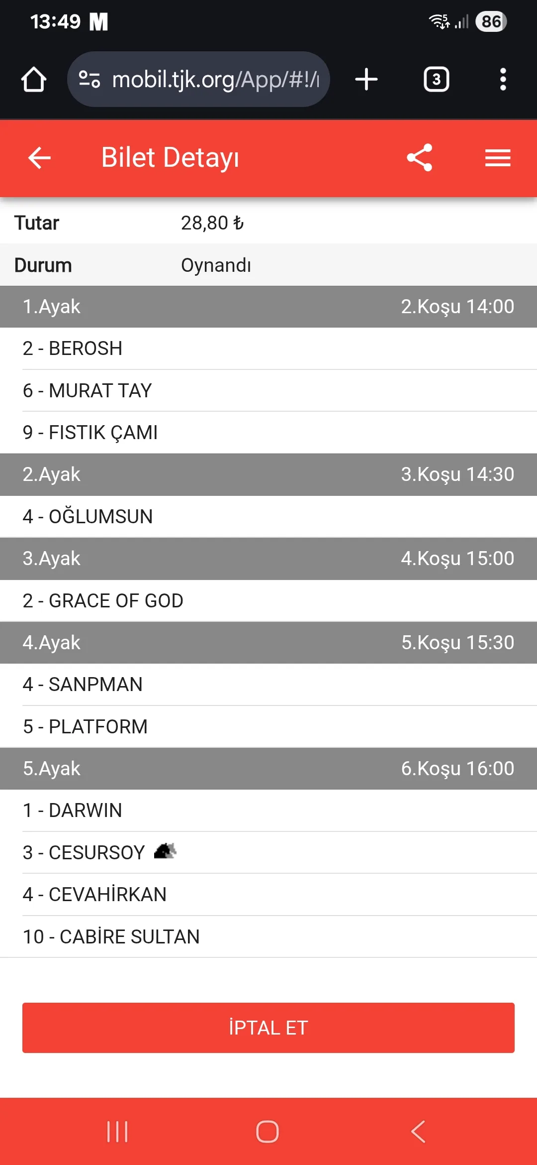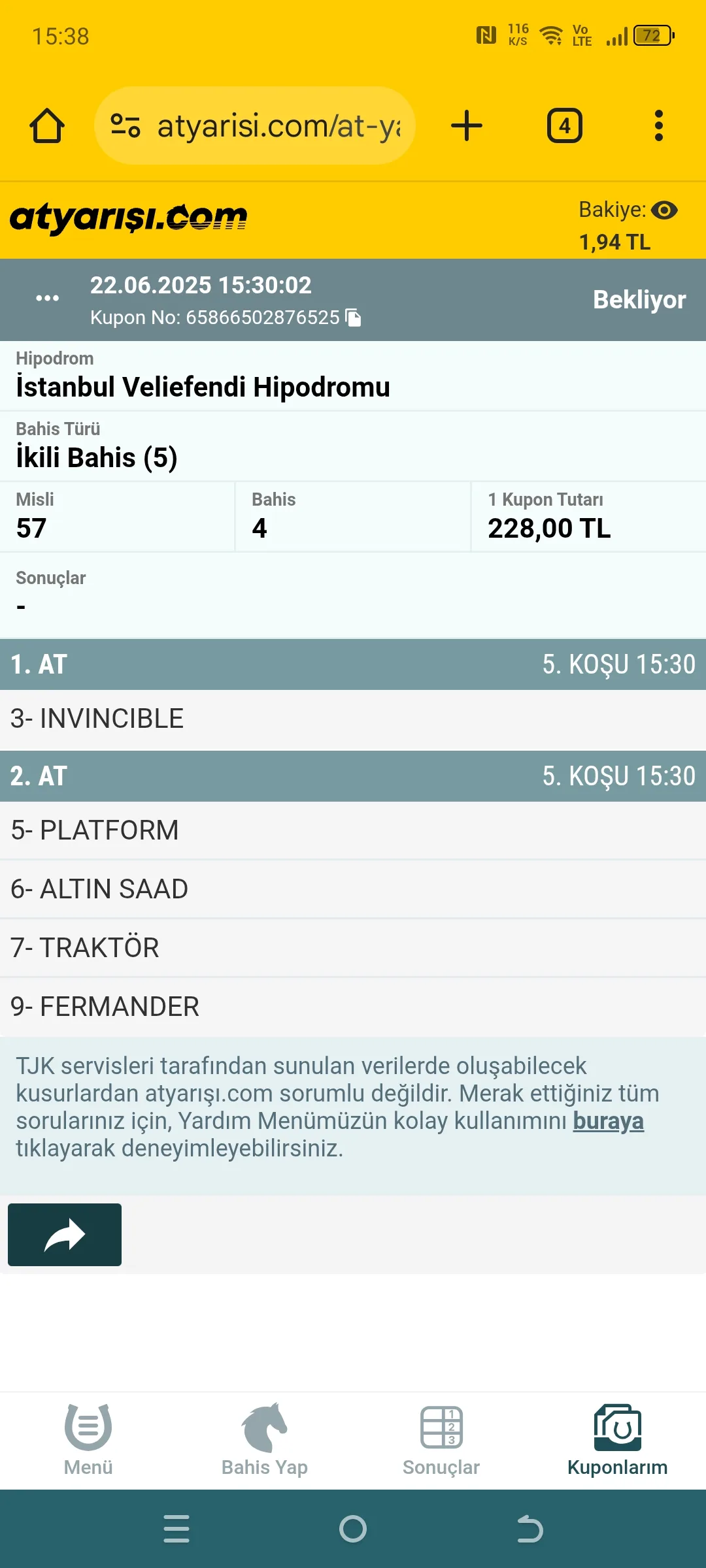 30 yılı aşkın bir süredir at yarışlarını takip ediyorum ve oynadığım kuponları ücretsiz paylaşmaktayım.
