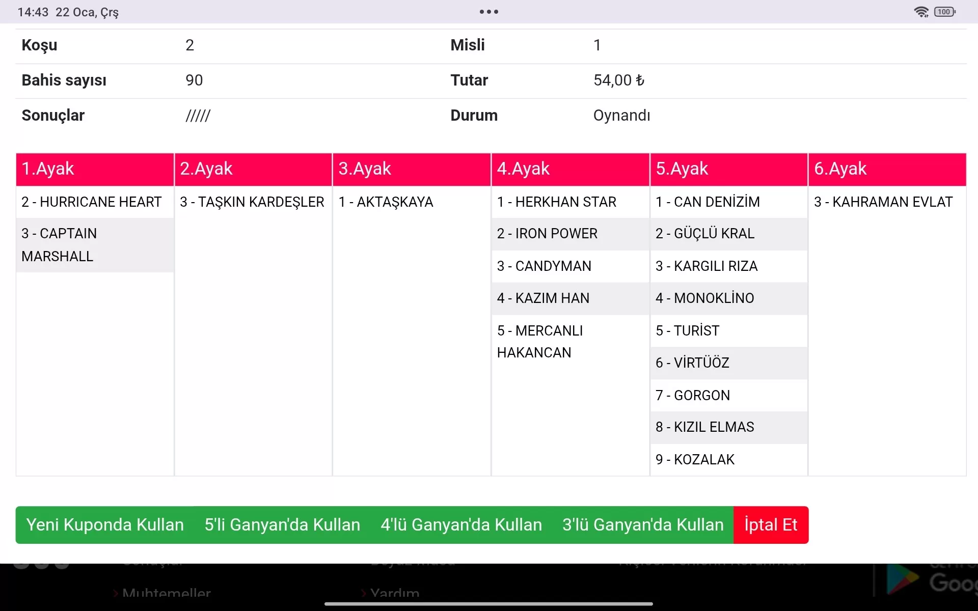 Bahis sayısı 251.99999999999997 Tutar 151,20 ₺