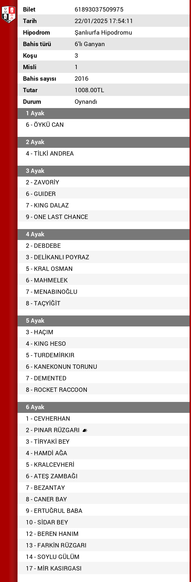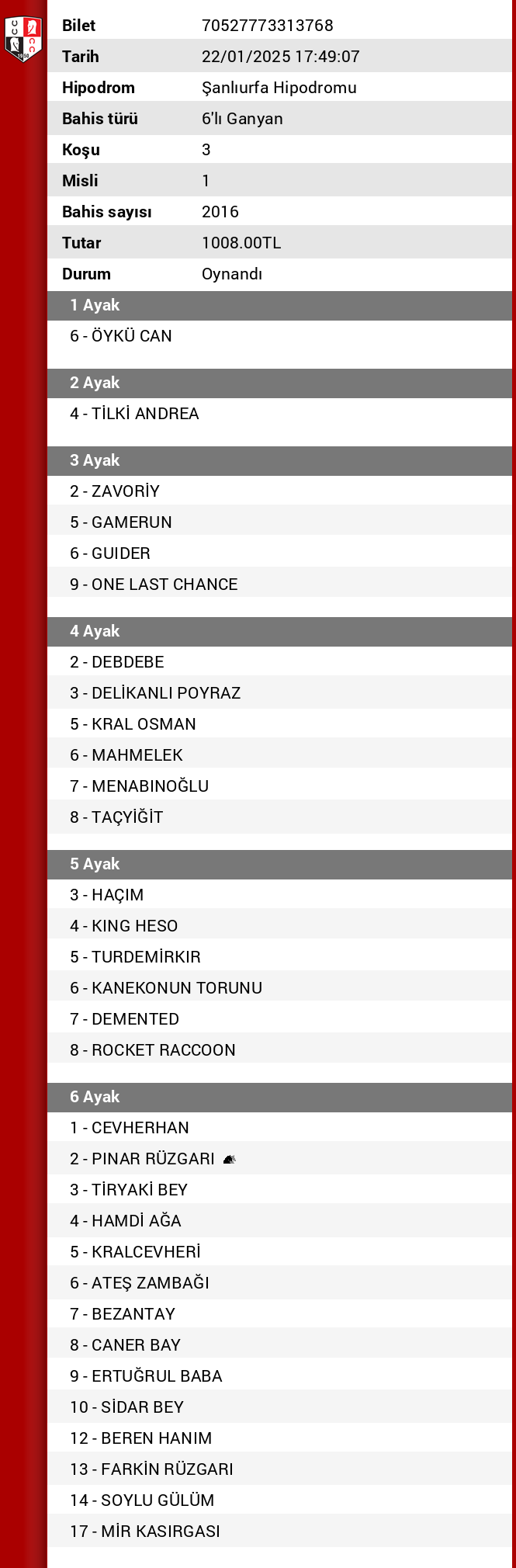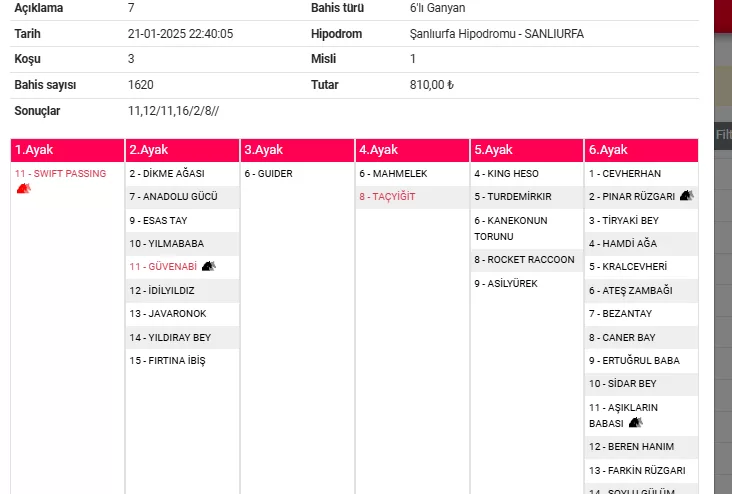 22 OCAK 2025 ŞANLIURFA DEVİRLİ ALTILI GANYAN TAHMİNLERİ (STALİNGRAD)