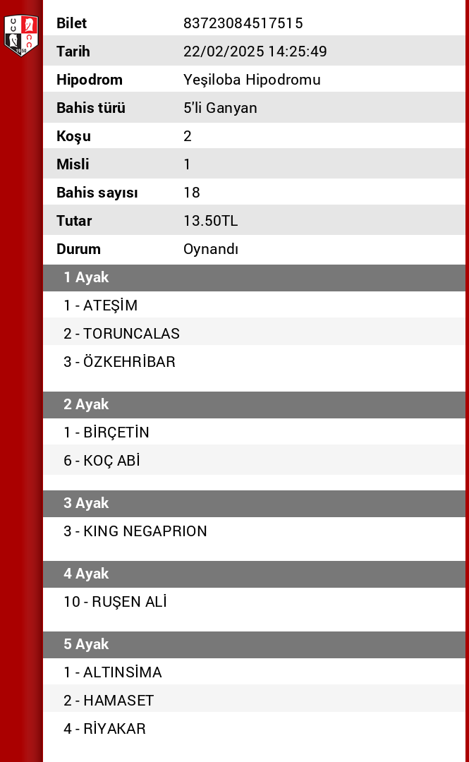 2.KOŞU: 2-TORUNCALAS bana göre bu grubun üzerinde bir safkan, tek yazayım mı diye düşündüm ama kilosu ağır da olsa son yarışlarında çok formda gözüken bir 1-ATEŞİM var..Bu iki safkanı yazınca da son yarışında sert gruptaki tabelası fena olmayan 5-IRMAK SU’yu da yazıp bu ayağı geçiyorum..