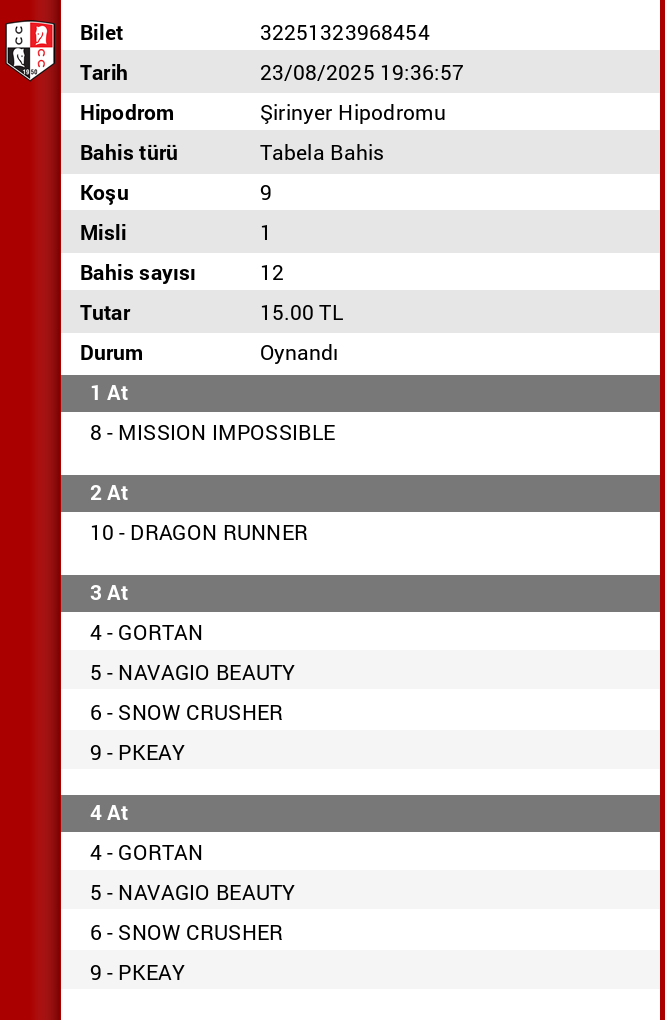 Emeğine sağlık üstat. Altılıya geç kaldık. Güzel tespitlerin için teşekkür ederim. 9.kosu 4/14 50 adet Sıralı gitti.cifte 51 adet 4/2 beklemede.