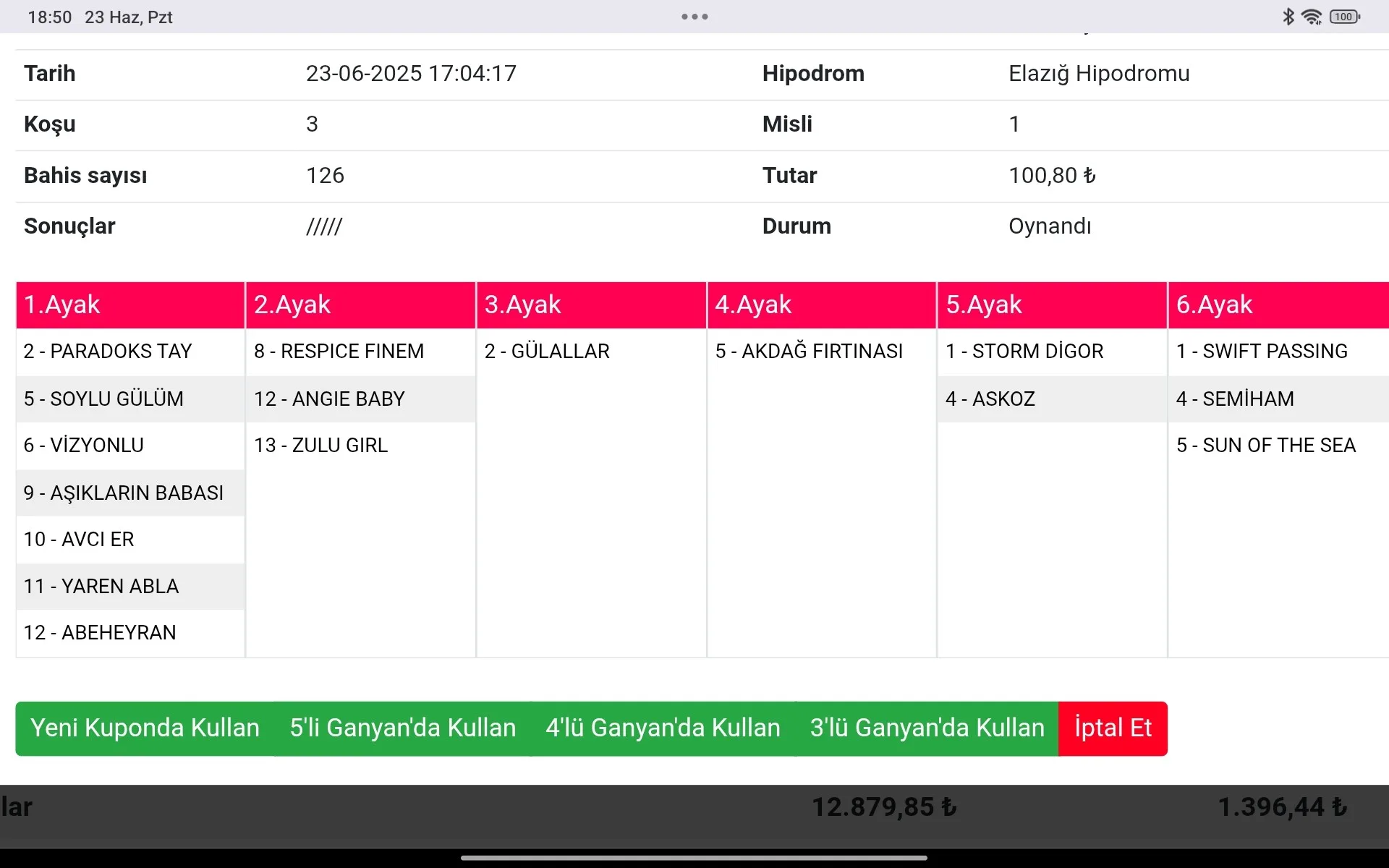 üstadım, bol şanslar son ayak 8 bizde 1 fazla sıkıştırmazsa büyük ihtimal kazanırız,rakip 9/13 gerisi hikaye, öztekbey tek rakip 5 akdağ, 2. ayak 4,startta kalmazsa rahat kazanır, rakip 9/13/12