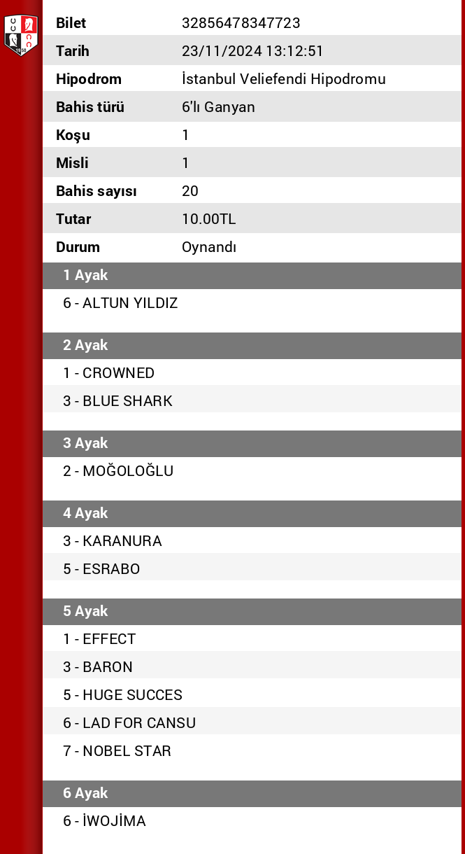 Sonra 6/8 ile beraber kapatmalik bir yarış ben ganyanli bir at bekliyorum
