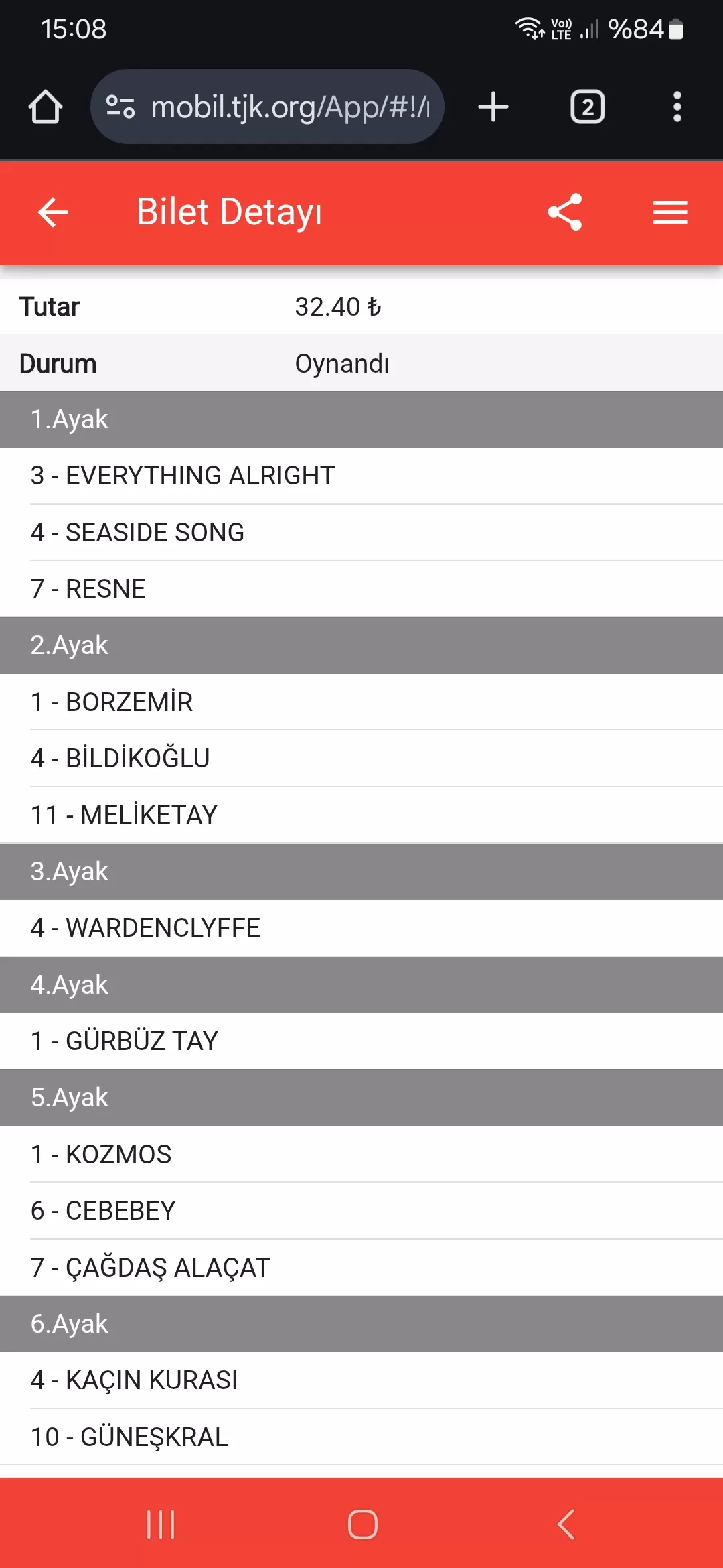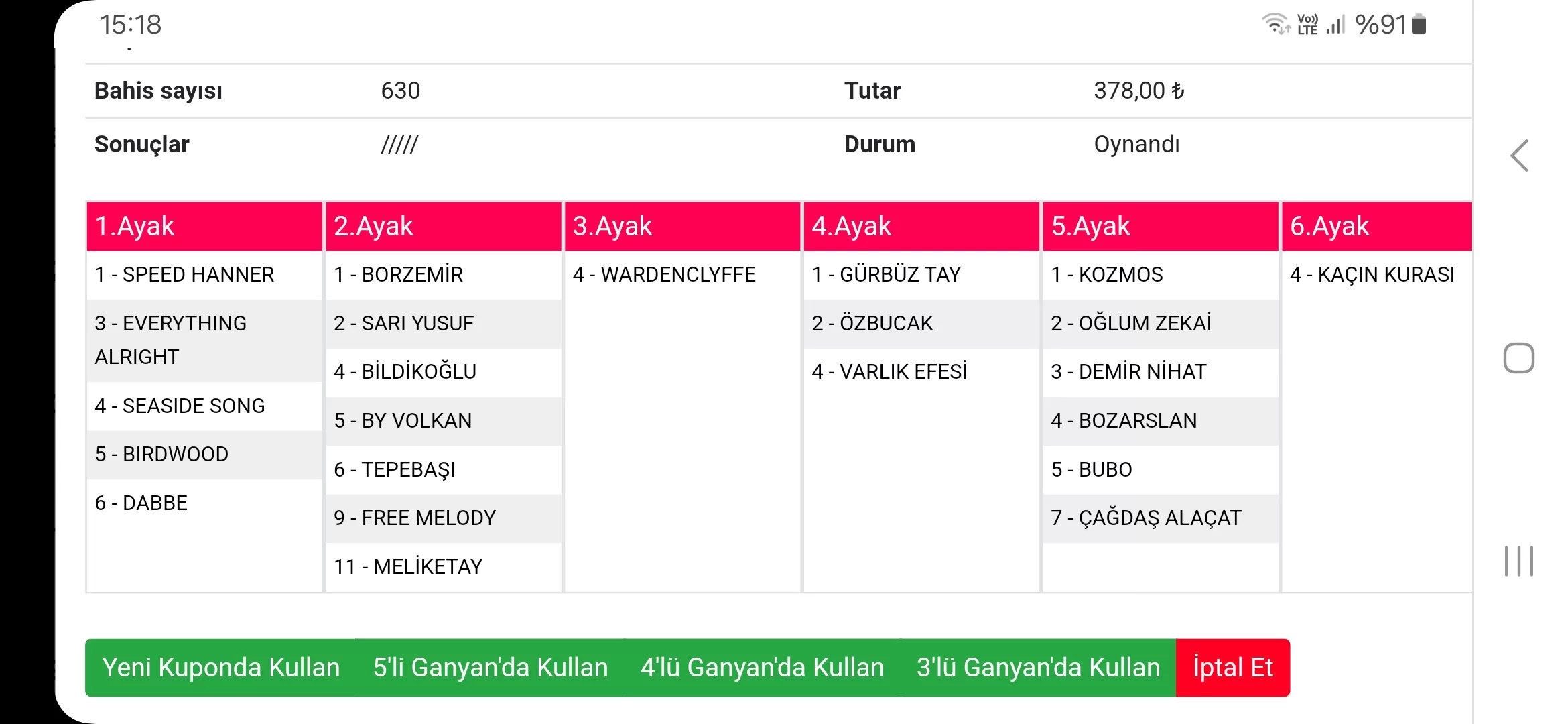 Bahis sayısı 144 Tutar 86,40 ₺
