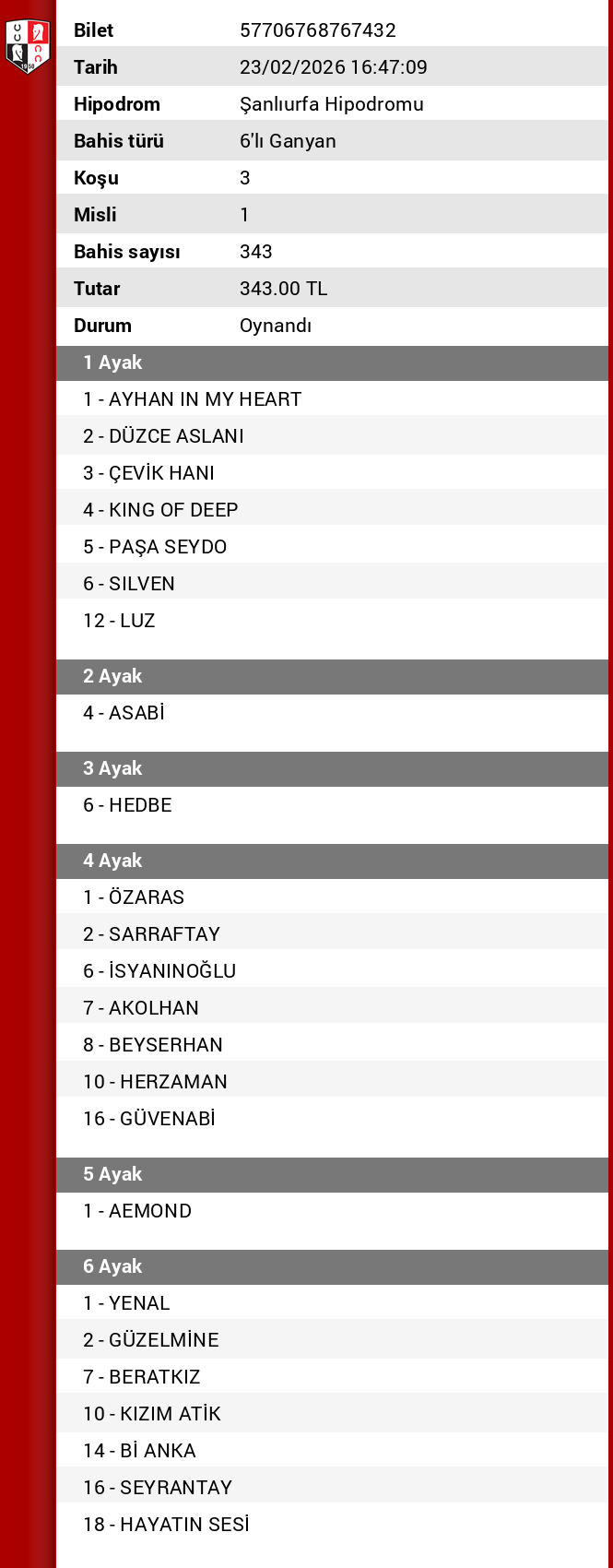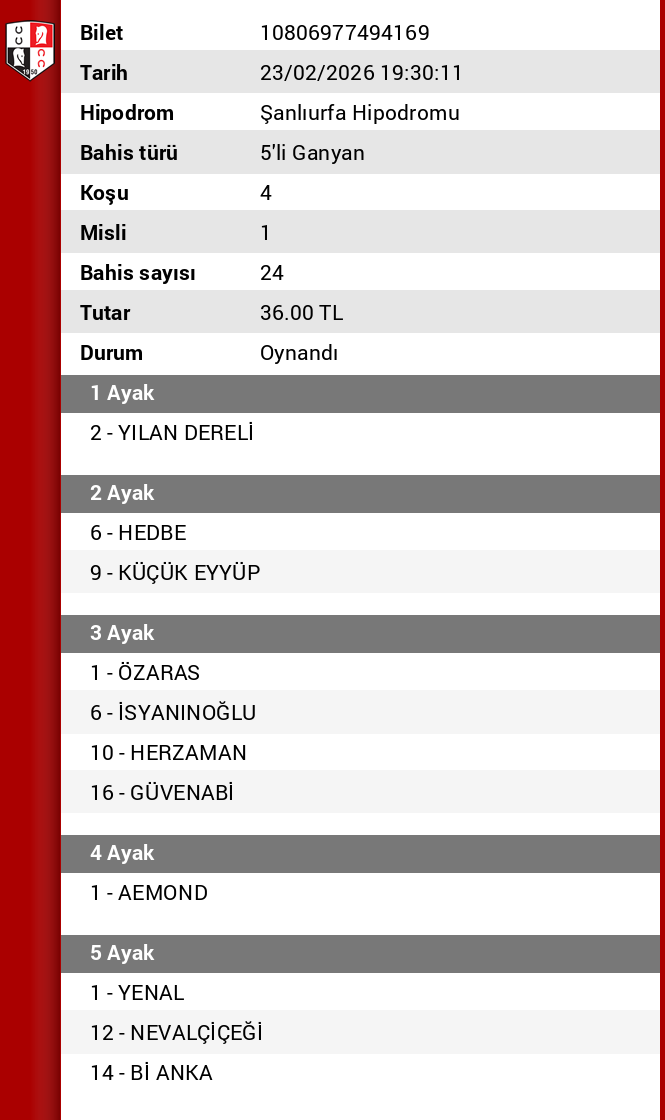 Yine urfa yine güzel ikramiye yine 5’te kaldık. Sağlık olsun. Tekler yine efsaneydi sta tebrikler teşekkürler.