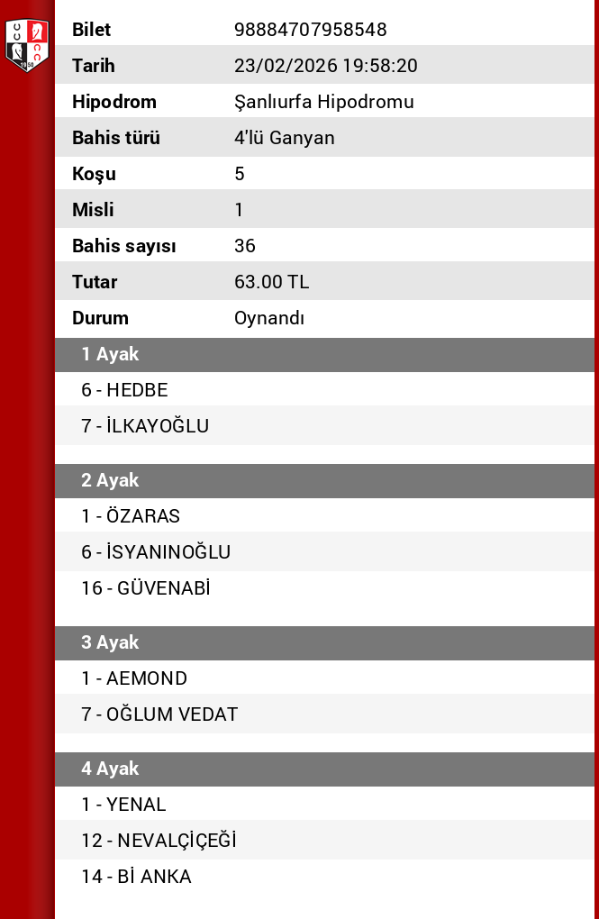 Valla ne desen haklısın hocam. Güvenabi’yi tek atsak 5. ayak maidena 7 at yazcaz kupon üstünde. Sağlık olsun.