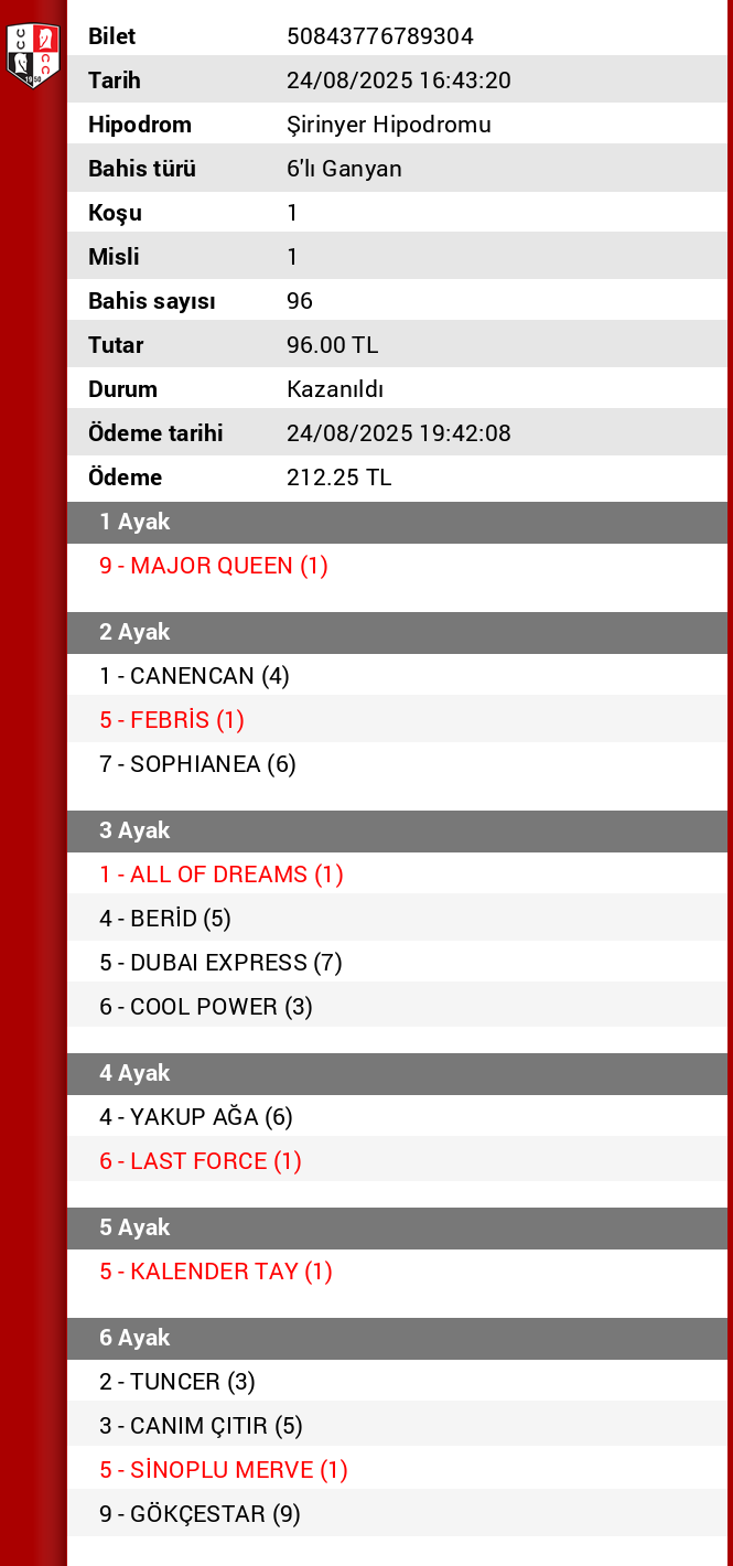İki ayakta bilerek mustafa çiçek yarış almaz dedim yazmadım altılıdan olduk Sağlık olsun