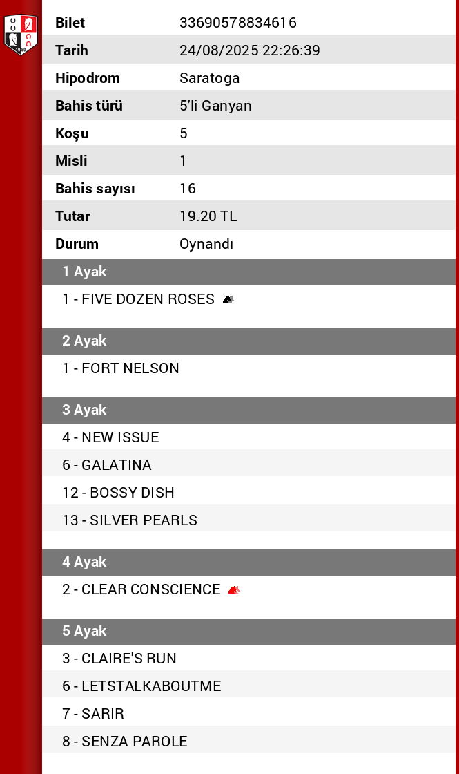 Birinci at ikinci atla ikbin yediyüz vermiş sıralı beşli bahis 26 bin vermiş