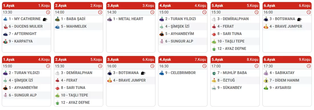 1.KOŞU: 1-MY CATHERINE gruptan bir tık önde olan isim…Startta takılmazsa 4-PRENSES EMIKA ve Ankara’da koşmuş olduğu tek koşuyu kazanmış olan 6-DUCENS MULIER rakip olarak önereceğim safkanlar..