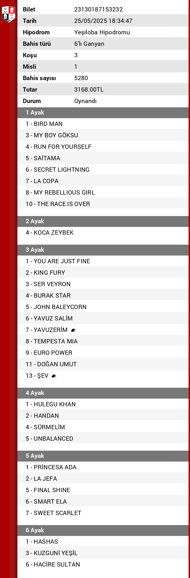 Aynen aldı dedim bende. Olsun 2. altılı bizde başkanım :)