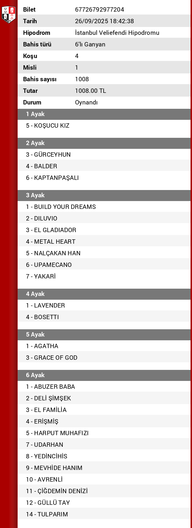 Ne zaman kuponu biraz küçülteyim desem çıkardığım at geliyor , yarınlara bakıcaz adminim:) Bol şanslar sana da