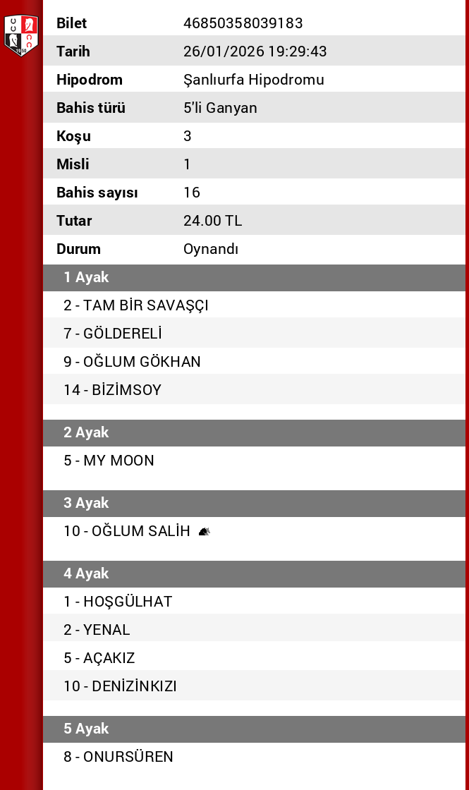 Sadece urfa oynamak mantıklı Akrep abi ve sta tevziyi alırsınız bi gün veya bu gün.Sizden harmanlayın sadece plase oynayacağım Akrep abi plaseye girecek atlardan verebilirsen sta abim ve senin limana sığınacak 1000 liralık yapacağım inşallah tutar selam bol sanslar