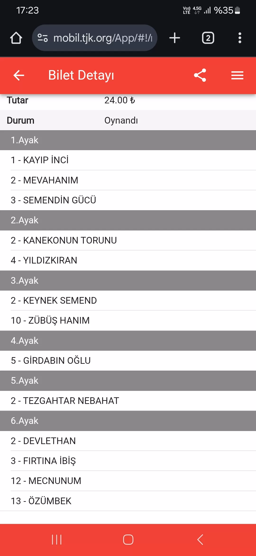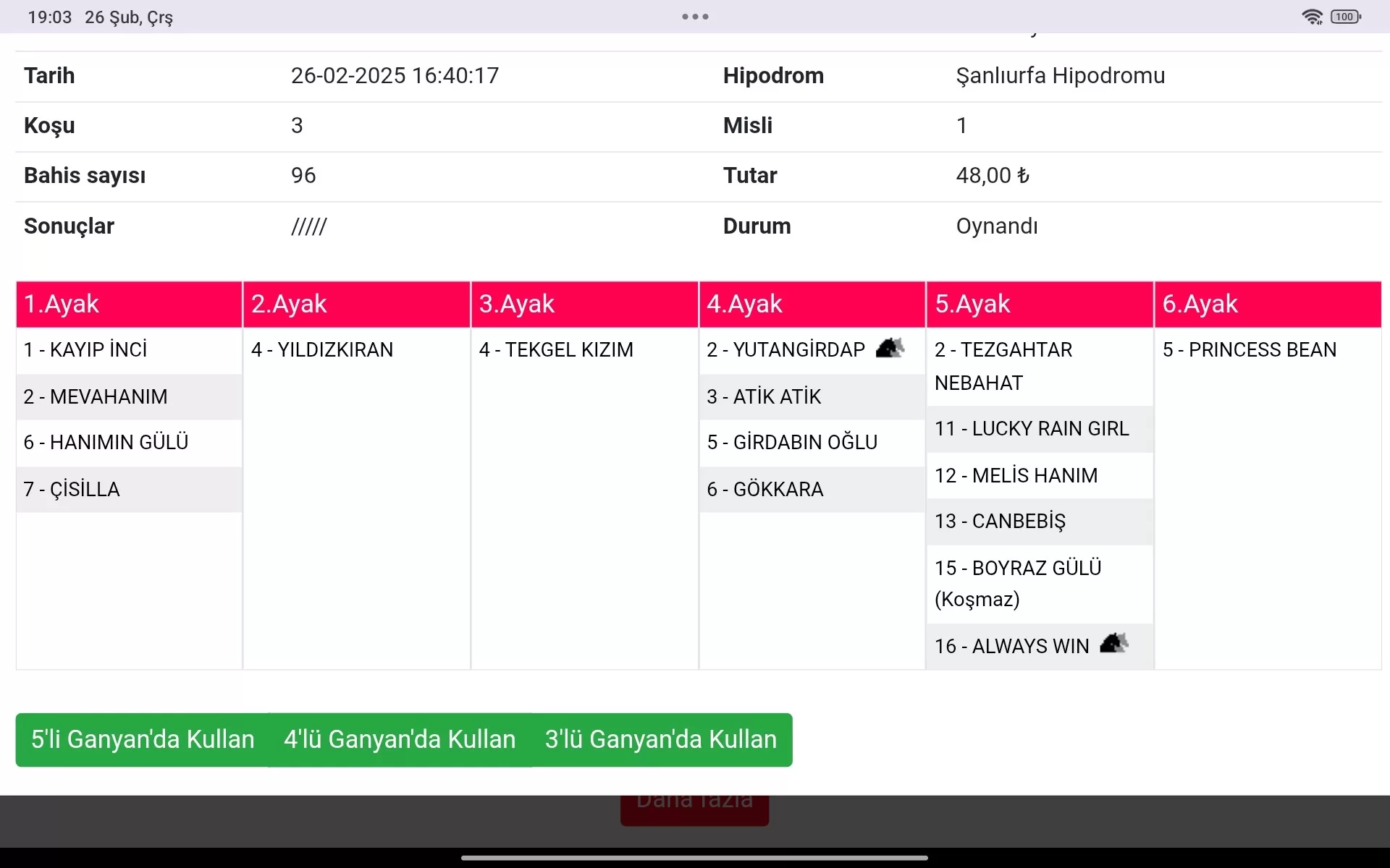 1.AYAK : 12 LARISA 8 GULFERZIN dıkkat edin 1 KAYIP İNCİ 2 MEVAHANIM sigorta