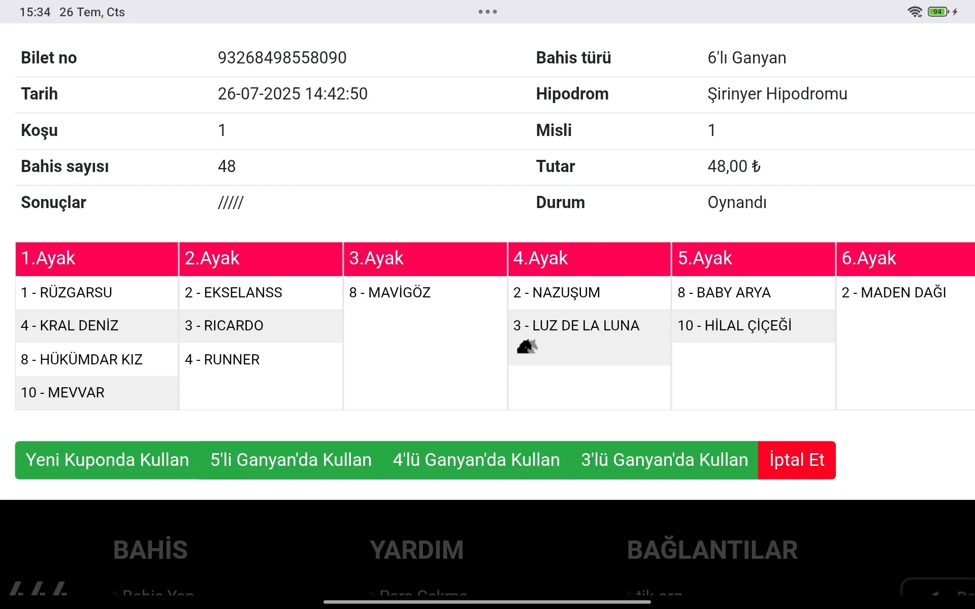 Aynen, dun aldiklarimizi TJK bugun tum gucu ile geri hortumluyor :) 1156 lira vermis, fena degil gibi, umarim zarari cikartmistir 🙏