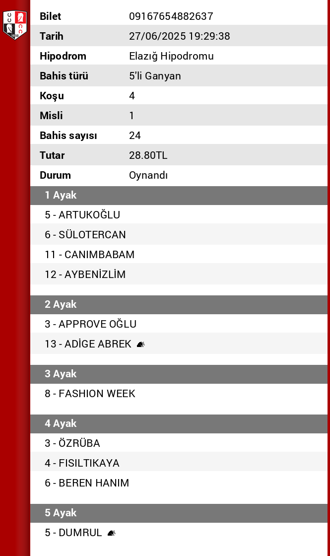 Bugun Elaziga bakacak vaktim olmadi Adminim. Istanbul gene sansizdik. Istanbul 6’liya yetisemedim. Yetissem ilk ayak tekti. 5li yaptim yine cimrilik. Nart Atesini 5li disinda butun kuponlarimda 2 at ile vardi. Kral karinca/nart atesi ciftesini ve 4lu ganyani aldim mesela. Ama gene buyuk baliklar kacti. Benim gursun dokturme vaktim gelmis herhal:)