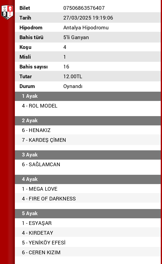 6.KOŞU: Bugüne kadar Antalya hariç İzmir başta olmak üzere batı bölgesi hipodromların tümünde yarışan ve başarılı sonuçlar almış olan bugün de Selim KAYA idaresinde ilk defa Antalya pistine çıkacak olan kalite safkan CANMETE, bu mesafelerde adeta istikrar abidesi olma yolunda ilerleyen SAĞLAMCAN Saadettin BOYRAZ ile birinciliğin iki güçlü adayı olurlar. Yine bu mesafelerde yarışları ile kıpırdama içerisinde olan IŞIK GECE günün sürprizini yaparsa ben şaşırmayacağım…