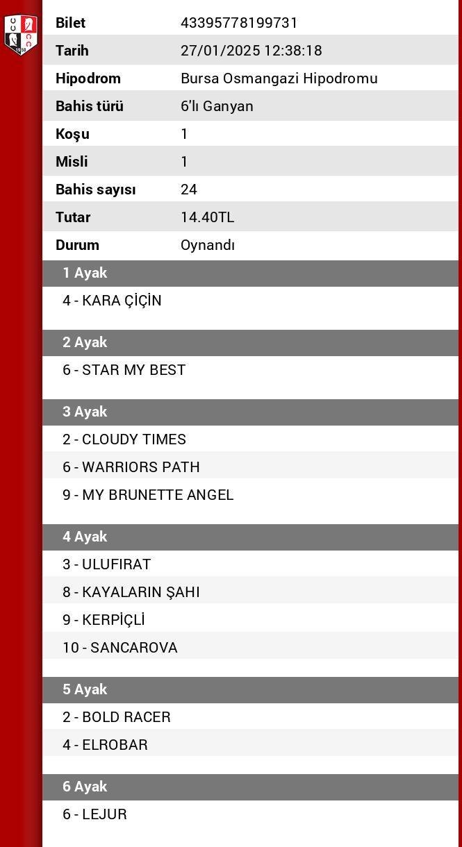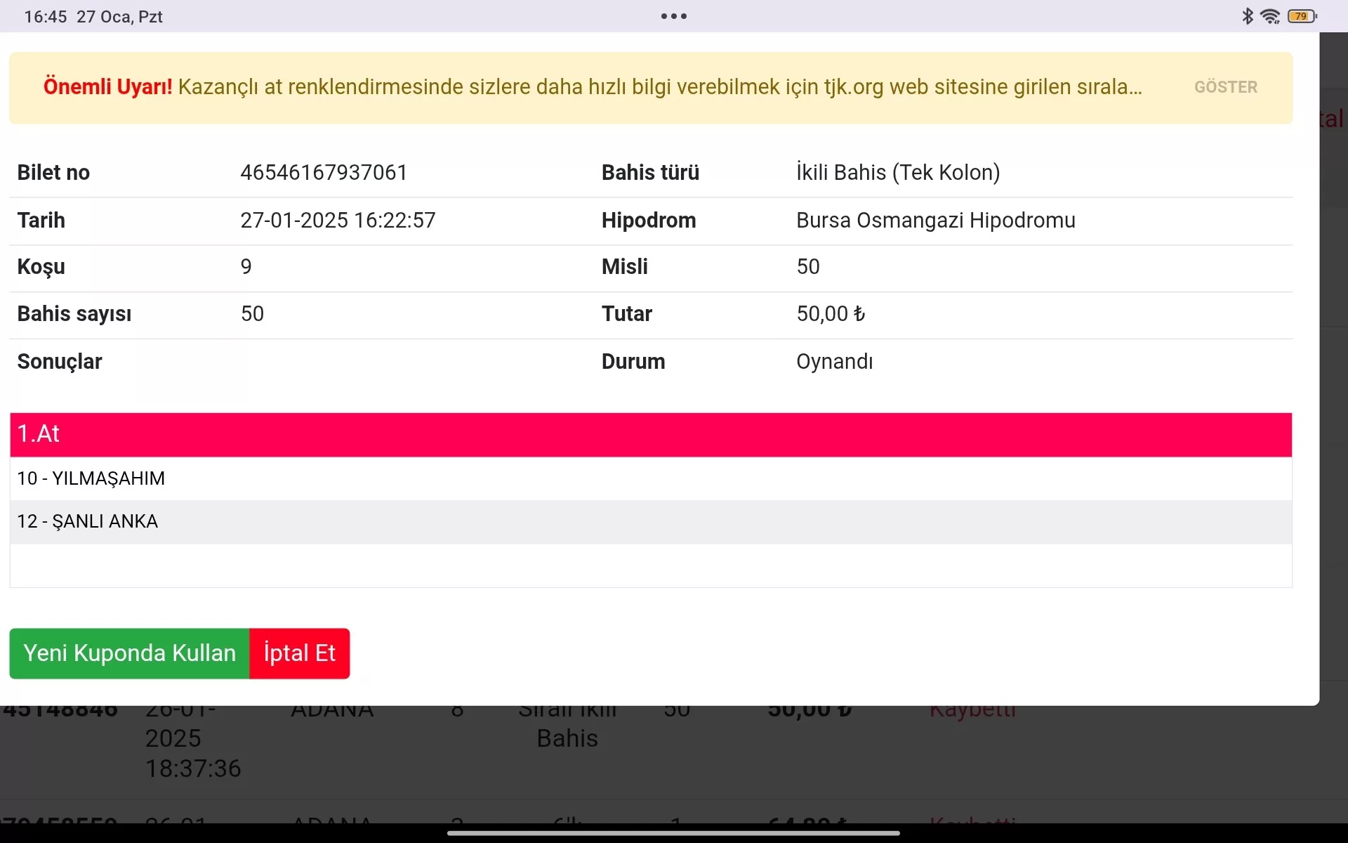 Tarih 27-01-2025 11:50:00 Hipodrom Bursa Osmangazi Hipodromu – BURSA