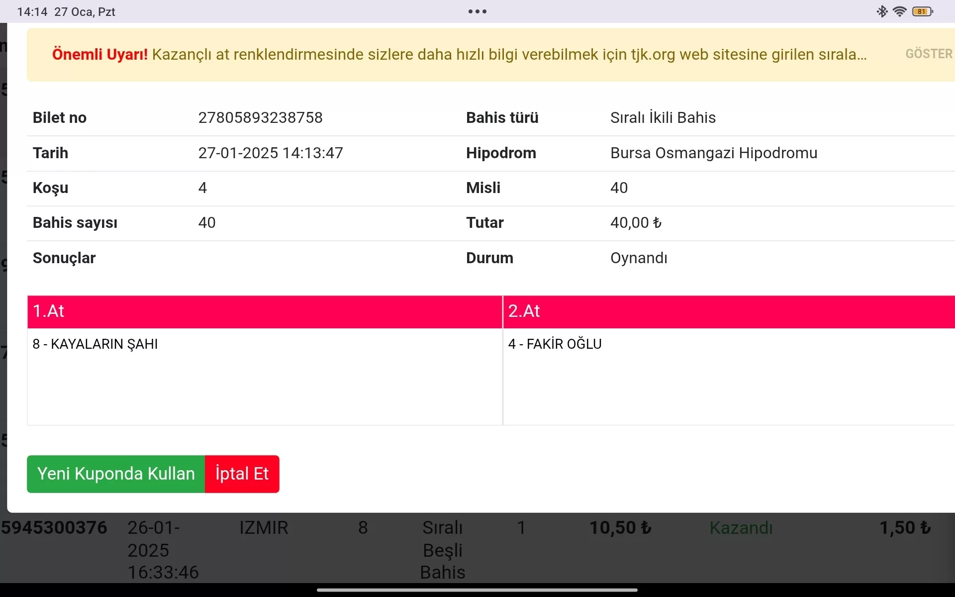 30 yılı aşkın bir süredir at yarışlarını takip ediyorum ve oynadığım kuponları ücretsiz paylaşmaktayım.