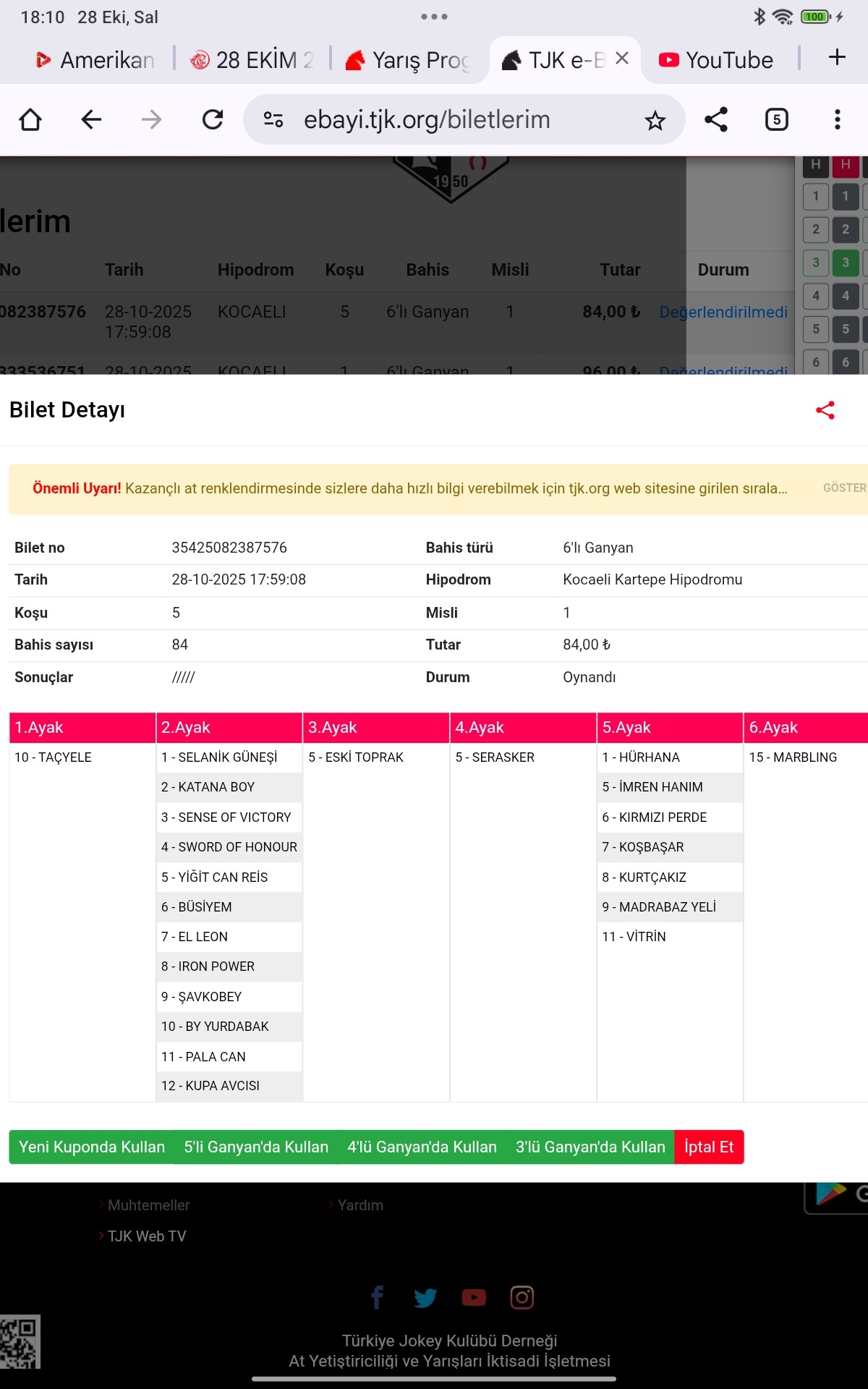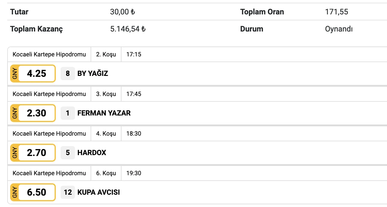2.ci altılıyı degiştirdim ters oyun yaptım
